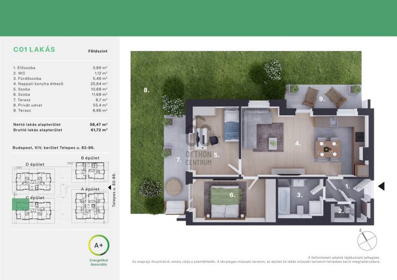Projekt bemutatásaA Daisy Liget Zugló csendes részén épül, közel a Bosnyék térhez. A megújult kertvárosias környezet a pesti oldal egyik legkedveltebb részei közé tartozik, az itt élők egyszerre élvezhetik a csöndes kis utcák nyugalmát és a belváros közelségét. A Bosnyák téren mindent megtalálunk ami a hétköznapi élethez szükséges: a Zenit corso bevásárlóközpontot, a Bosnyák téri piacot, patikát, éttermeket és kávézókat.Számos óvodát, általános iskolát, játszóteret és sportközpontot is találunk a 10 perces sétatávolságon belül.A társasház különleges homlokzatával, egyedi fiatalos dizájnjával, kiemelkedik a környező épületek közül. A 4 emelet magas, szellősen elhelyezett épületek tökéletesen illeszkednek a környéken jellegzetes, előkertes kialakítású épületekhez.Figyelembe véve a jövő elvárásait, a társasház modern, környezetbarát, mennyezeti hűtő, -fűtő rendszerrel ellátott.Vevőinknek lehetőségük nyílik, hogy új otthonukat az utolsó részletig személyre szabják: változtathatnak az ingatlann elosztásán, széles kollekcióból választhatnak meleg- és hideg burkolatokat, szanitereket. Az alapáras burkolatokon felül, elérhetőek feláras termékek is, mely biztosítja, hogy olyan lakásban lakjanak mit megálmodtak maguknak.A fizetési ütemezés: 10-90%A jelen adatok tájékoztató jellegűek, ezért a Beruházó (sem a hirdető) azok változásával, vagy bármely attól való eltéréssel kapcsolatban semmilyen kötelezettséget, vagy felelősséget nem vállal.Az alaprajzokon ábrázolt berendezési tárgyak és bútorok, a burkolatok megjelenése nem képezi a szerződés tárgyát. A pontos felszereltségről a műszaki leírásban olvashat bővebben.Az aktuális lakáskínálatról és árakról érdeklődjön telefonon!