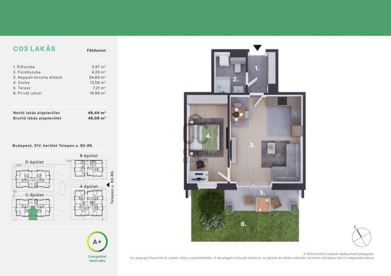 Projekt bemutatásaA Daisy Liget Zugló csendes részén épül, közel a Bosnyék térhez. A megújult kertvárosias környezet a pesti oldal egyik legkedveltebb részei közé tartozik, az itt élők egyszerre élvezhetik a csöndes kis utcák nyugalmát és a belváros közelségét. A Bosnyák téren mindent megtalálunk ami a hétköznapi élethez szükséges: a Zenit corso bevásárlóközpontot, a Bosnyák téri piacot, patikát, éttermeket és kávézókat.Számos óvodát, általános iskolát, játszóteret és sportközpontot is találunk a 10 perces sétatávolságon belül.A társasház különleges homlokzatával, egyedi fiatalos dizájnjával, kiemelkedik a környező épületek közül. A 4 emelet magas, szellősen elhelyezett épületek tökéletesen illeszkednek a környéken jellegzetes, előkertes kialakítású épületekhez.Figyelembe véve a jövő elvárásait, a társasház modern, környezetbarát, mennyezeti hűtő, -fűtő rendszerrel ellátott.Vevőinknek lehetőségük nyílik, hogy új otthonukat az utolsó részletig személyre szabják: változtathatnak az ingatlann elosztásán, széles kollekcióból választhatnak meleg- és hideg burkolatokat, szanitereket. Az alapáras burkolatokon felül, elérhetőek feláras termékek is, mely biztosítja, hogy olyan lakásban lakjanak mit megálmodtak maguknak.A fizetési ütemezés: 10-90%A jelen adatok tájékoztató jellegűek, ezért a Beruházó (sem a hirdető) azok változásával, vagy bármely attól való eltéréssel kapcsolatban semmilyen kötelezettséget, vagy felelősséget nem vállal.Az alaprajzokon ábrázolt berendezési tárgyak és bútorok, a burkolatok megjelenése nem képezi a szerződés tárgyát. A pontos felszereltségről a műszaki leírásban olvashat bővebben.Az aktuális lakáskínálatról és árakról érdeklődjön telefonon!