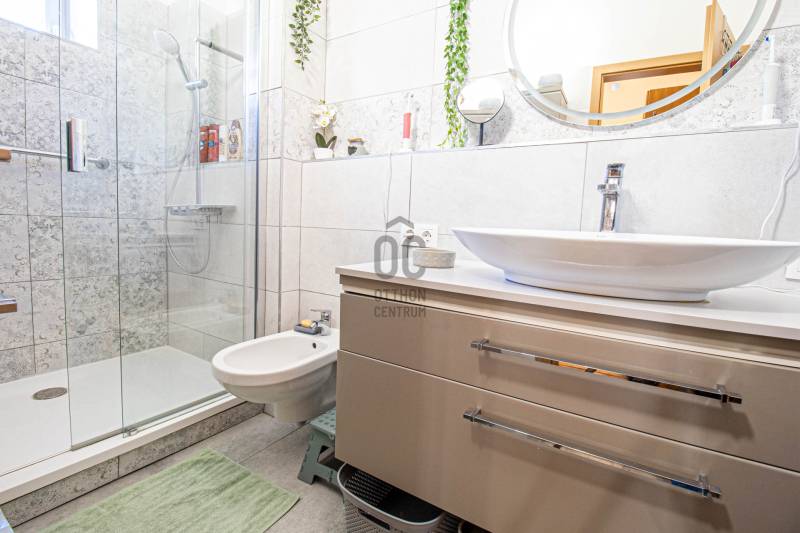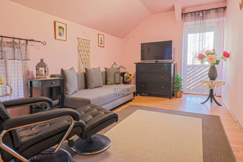 Ha mindig is egy nyugodt, zöldövezeti otthonról álmodott, ahol a madarak csicsergésére ébredhet, mégis karnyújtásnyira van a város minden kényelmétől – itt megtalálja. A szépen karbantartott, kétszintes családi ház egy csendes mellékutcában helyezkedik el, rendezett környezetben.Az alsó szinten világos, tágas nappali-étkezős konyha, egy hálószoba, kamra, valamint fürdő és külön wc található.A felső szinten két további szoba, egy gardrób és egy második fürdőszoba kapott helyet – ideális elrendezés családok számára.A nappali központi eleme a hangulatos kandalló, amely nemcsak meleget, hanem igazi otthonérzést is áraszt a téli estéken.A Vaillant gázkazán a fűtésről, a műanyag nyílászárók és a szigetelt homlokzat és födém pedig az energiahatékonyságról gondoskodnak.A ház színvilága és belső kialakítása harmóniát sugároz – a természetes anyagok, a fa melege és a finom részletek egy igazán barátságos légkört teremtenek. A fedett terasz a ház igazi ékköve: itt kávézhat reggel a szőlőlugas árnyékában, vagy pihenhet este egy pohár borral a kézben.Az udvaron helyet kapott egy fatároló, egy fedett gépkocsibeálló, valamint egy nyitott parkoló elektromos kapuval.A környéken minden megtalálható, amire a mindennapokban szüksége lehet – iskola, óvoda, bolt, gyógyszertár, buszmegálló néhány perc sétával elérhető.Békesség, melegség és harmónia Sopron egyik legszebb részén.Szeretettel várom hívását!Hitelre van szüksége?Az Otthon Centrum az ország egyik legnagyobb és legmegbízhatóbb hitelközvetítőjeként, teljes körű és díjmentes hitelügyintézéssel, biztosításkötéssel áll rendelkezésére!Kérje személyre szabott ajánlatunkat Kollégáinktól!
