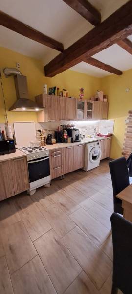 Tisztelt Érdeklődő!Ha olyan otthont keres, ahol a nyugalom és a kényelem egyszerre jelen van, akkor ez a csanádpalotai családi ház éppen Önnek szól.Az Asztalos P. Kálmán utcában található ingatlan mindössze pár percre van a városközponttól – autóval és kerékpárral is pillanatok alatt elérhető minden, amire a mindennapokban szüksége lehet.A vegyes falazatú, 106 m²-es ház két tágas szobával, konyhával, kamrával, fürdőszobával, közlekedőkkel és előszobával várja új tulajdonosát. A helyiségek burkolatai igényesek: a szobákban laminált padló, máshol járólap, a kamrában pedig betonburkolat található. A fűtés gázkazánnal megoldott radiátorokon keresztül, amely a meleg vizet is biztosítja, így minden adott az otthonos, kényelmes mindennapokhoz.A ház, részben megújult, a kamra és a hátsó közlekedő befejezésre vár. A felújított részen már korszerű műanyag nyílászárók lettek beépítve, míg a még befejezésre váró területeken a régi fa ablakok és ajtók maradtak meg.Az ingatlan teljes közművel rendelkezik: a villamosenergia, a vezetékes víz, a csatorna és a gáz mind be van kötve, így új tulajdonosnak nem kell további beruházásokkal számolnia.A 842 m²-es telek mérete ideális: elég nagy ahhoz, hogy kényelmesen élhessen, mégis könnyen gondozható. Az udvaron fedett terasz és tároló is található, bár ezek későbbi bontása elképzelhető. Az ingatlan folytatásában egy 91 m²-es, téglaépítésű, betonozott tároló kapott helyet, amely sokrétűen hasznosítható, akár műhelynek, akár hobbiszobának is.Energetikai tanúsítvány: vanEnergetikai besorolás: GCO2 kibocsátás: GA ház 90 napos határidővel költözhető.Ha élhető, csendes környezetben szeretne otthonra találni, ne habozzon!Hívjon most, és foglaljon időpontot a megtekintésre!Csanádpalotáról bővebben itt: http://www.csanadpalota.huLegyen tisztában pénzügyeivel, mielőtt elkötelezi magát! Ebben díjmentesen az Ön rendelkezésére áll bankfüggetlen hitelközvetítőnk.Vevőinket profi és kedvező díjazású ügyvédi háttérrel is segítjük a szerződéskötés során.Az ingatlanról rövid bemutató videó is készült. Ha ezt a hirdetést az Otthon Centrum weboldalán nézi, akkor a videó azonnal indítható a képgaléria elején. Ha egy másik weboldalon találta ezt a hirdetést, kérem, nyissa meg az Otthon Centrum weboldalát, kattintson a „Regisztrációs szám keresése” menü pontra, és írja be ezt a regisztrációs számot a keresőbe: H509305 Itt meg tudja tekinteni az ingatlanról készült videót és még több képet, vagy írjon nekem, és szívesen elküldöm a felvételt, képeket.#otthoncentrummako #makoiingatlan #csanadpalotaeladohaz #ingatlan #otthoncentrum #eladohaz #ingatlanpiac #nyugalom #hagymatikum #forsale #oc #hitel #ocmako #biztositas #realestate #veledmindenlepesnel #kerteshaz #csaladihaz #ingatlankozvetites #almokatepitunk #falusicsok
