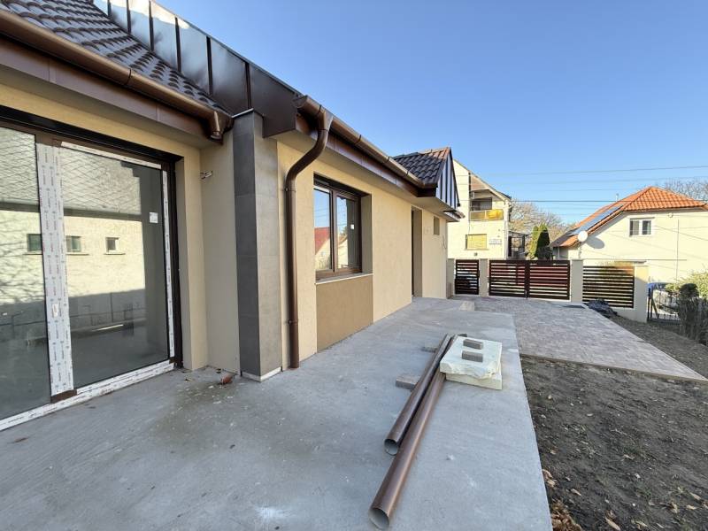 Új építésű, kulcsrakész családi ház eladó Pécelen, a Kolozsvári utcában!Pécel egyik csendes, rendezett mellékutcájában eladó egy új építésű, földszintes családi ház 330 m²-es kizárólagos használatú telekrésszel, amely egy meglévő épülethez kapcsolódva, bővítési engedéllyel épült modern műszaki tartalommal és minőségi anyaghasználattal.A ház nettó 72,5 m² alapterületű, melyhez 16,66 m²-es terasz és 3,85 m²-es belépő is tartozik. A belső elosztása praktikus és átgondolt:tágas nappali–konyha–étkező, két hálószoba, két fürdőszobaA 30 cm Porotherm téglafal és a 15 cm EPS homlokzati hőszigetelés kiváló hőmegtartást biztosít. A vízszintes fa födémen 30 cm ásványgyapot szigetelés, a padlóban 10 cm lépésálló hőszigetelés található.A 3 rétegű üvegezésű, hőszigetelt nyílászárók között toló teraszajtó, valamint alumínium, hőszigetelt elektromos redőnyök és szúnyoghálók is beépítésre kerültek.A fűtésről kondenzációs gázkazán gondoskodik padlófűtéssel, a kellemes hőmérsékletet hűtő-fűtő klíma egészíti ki.A térkövezett járda és autóbeálló, elektromos kapu, valamint a modern, letisztult kerítés tovább emeli a ház kényelmét és esztétikáját.Az ingatlan kulcsrakészen kerül átadásra 2 hónapon belül.Minőségi burkolatok, szaniterek beltéri ajtók kerülnek beépítésre.Ez a ház ideális választás mindazoknak, akik modern, energiatakarékos otthont keresnek nyugodt környezetben, mégis közel Budapesthez.INGYENES hitel tanácsadás, CSOK Plusz ügyintézés!BANKFÜGGETLEN hitelcentrumunk az összes elérhető bank és hitelintézet ajánlatát versenyezteti az Ön kedvéért, ráadásul DÍJMENTESEN.- Egyedi, bankfiókban nem elérhető kamat- és díjkedvezmények- Hitelképesség vizsgálat- Idő, energia és pénz megtakarítás- Teljes hivatali ügyintézésAmennyiben hirdetésem felkeltette az érdeklődését vagy egyéb információra van szüksége hívjon bizalommal!