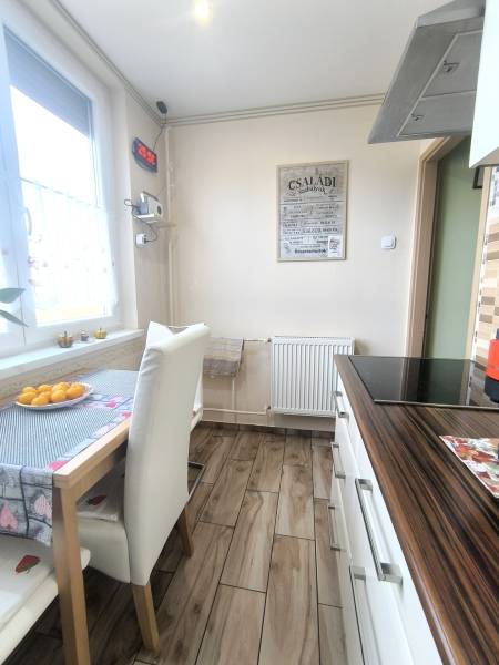 Megvételre kínálunk Tatabányán a Gál István lakótelepen egy IV. emeleti 3 szobás, 64 nm-es felújítot, erkélyes lakást egy 4 emeletes tömb záró szintjén. Lift sajnos nincs, viszont cserébe a lakás csendes, biztos lehet benne, hogy senki sem fog fapapucsban a feje felett rohangálni. A társasház a tetőt nemrégiben szigeteltette, így egy esetleges beázástól sem kell tartania. A lakás belül mind esztétikailag, mind műszakilag felújított, jó állapotú, így jővőbeli tulajdonosának csak egy festésre lesz szüksége. Az ingatlan zöld övezetben található, környezetében rengeteg fával, parkokkal.A lakás könnyen megközelíthető akár tömegközlekedéssel is. Közelben buszmegálló, vasútállomás 3 perc könnyű sétával, vagy 1 perc rohanva. A környéken több iskola, óvoda, üzletek minden egyéb megtalálhatóak szintén gyalogos távolságban.A lakás méretéből adódóan ideális lehet családosoknak, ahol a gyerekszoba mellett saját hálószobájuk is lehet a szülőknek.Amennyiben további információra lenne szüksége, vagy csak szeretné megtekinteni az ingatlant, kérem vegye fel velem a kapcsolatot.A lakás OTTHON START HITEL és CSOK PLUSZ felvételéhez alkalmas.Az Otthon Centrum irodánkban Önnek 20 bank és pénzintézet ajánlata közül választjuk ki a legideálisabbat. Amennyiben új, vagy használt lakást vásárolna, de nem rendelkezik elegendő fedezettel, úgy hitel tanácsadónk először felméri hitelképességét. Majd megismerteti Önnel a különböző banki termékek részleteit, és segít eldönteni, hogy mely hitelkonstrukció, vagy igényelhető támogatási forma a legmegfelelőbb az Ön számára. CSOK igénylésében is tudunk segíteni Önnek.Nagyon nehéz és időigényes feladat eligazodni a sok banki termék és fogalom között, rendkívül bonyolult feladat a különböző lehetőségek összehasonlítása és még annál is bonyolultabb az ideális megoldás megtalálása. Az Otthon Centrum Hitel Center nagy tapasztalattal és naprakész banki információval rendelkező szakértői segítenek eligazodni 20 bank és pénzintézet termékei között és megtalálni az Ön igényeinek leginkább megfelelő személyre szabott megoldást. A hitel kiválasztását követően ismertetik Önnel, hogy milyen dokumentumok kitöltésére illetve beszerzésére lesz szükség. A hitelkérelmi csomag összeállításban kollégáink mindenben segítségére lesznek, majd az elkészült dokumentációt eljuttatják a bankba. Ha kérdése merül fel, hívjon!