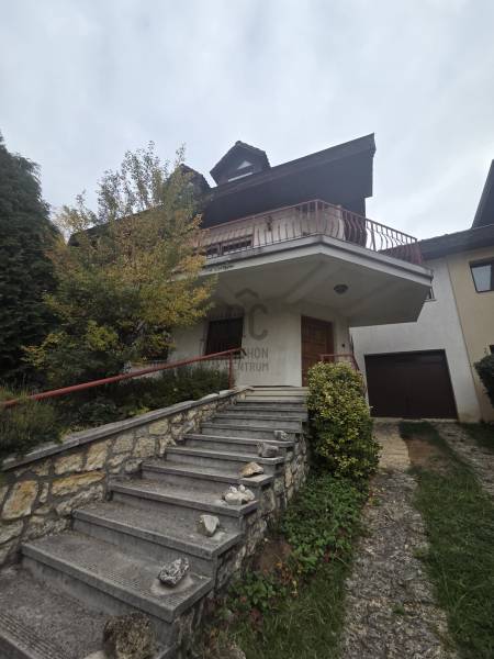 Veszprém belvárosához közel, de mégis csendes, zöldövezeti részen vált eladóvá ez az 1990-es évek elején épült tégla családi ház, mely 3 szinten mintegy 300 négyzetméter hasznos alapterülettel rendelkezik.A ház - elhelyezkedését tekintve - átmenő forgalomtól mentes helyen, egy zsákutca végén található, körbekerített, parkosított telken. A második és harmadik emeletéről is szép rálátást kapunk a veszprémi Várra és várnegyedre, mely egyedi panorámát kölcsönöz a nappalinak és a szobáknak is.Az ingatlan összközműves, riasztóval védett. Belső kialakítását tekintve egy többgyermekes családnak, de akár többgenerációs otthonnak is tökéletes választás lehet! A ház szintenkénti elosztása:- Földszint: előszoba, fogadótér - lépcsőház, szoba, közlekedő, fürdőszoba, mosókonyha/ gépészet, kamra, tároló, garázs, - 1. szint: közlekedő, hálószoba, nappali + terasz, wc, fürdőszoba, kamra, dolgozó szoba, konyha+ étkező közvetlen udvarkapcsolattal- 2.szint: 3 hálószoba, teakonyha, közlekedő, fürdőszoba, wc, tárolóA ház fűtését gázkazán látja el radiátoros hőleadókkal, nyílászárói fából készültek.Amennyiben kérdése merülne fel az ingatlannal kapcsolatban vagy szeretné megtekinteni, kérem keressen megadott elérhetőségeim egyikén!