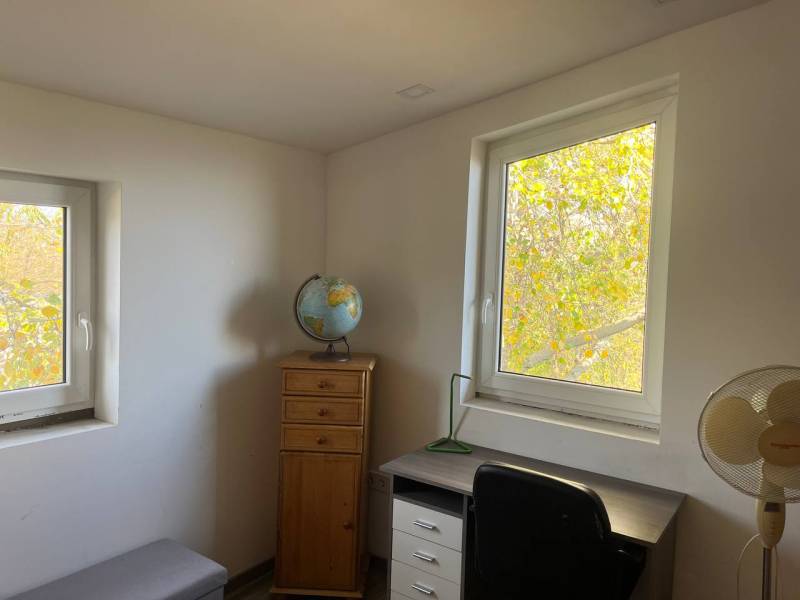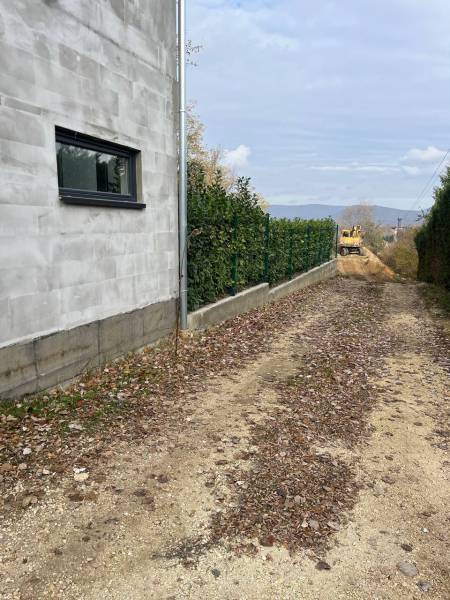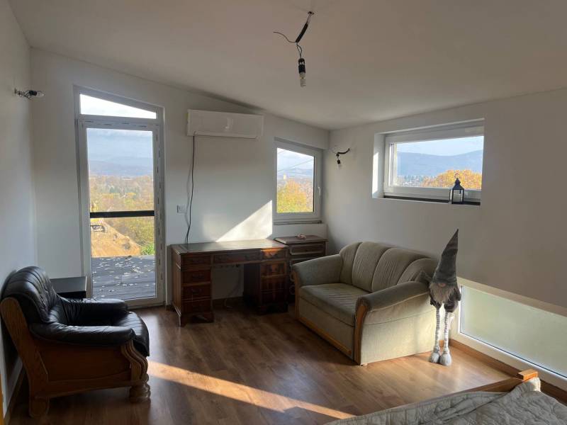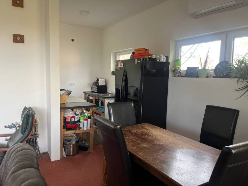 Solymáron eladó egy belterületi 3100 nm-es GKsz-1 es besorolású telken álló 125 nm-es családi ház. Az övezeti besorolás 40 % os beépíthetőséget tesz lehetővé, gazdasági, ipari, kereskedelmi tevékenység is végezhető a területen.Az utcafrontról 6 m széles elektromos úszókapun juthatunk be a tágas előkertbe, ahol legalább 10 db \" ügyfélparkoló\" alakítható ki. Ezen kívül a ház mögötti terület is jelentős nagyságú.A ház két szintes,( hivatalosan is a besorolásnak megfelelően iroda+ lakás funkciót tölt be), helyiségbeosztása a következő:FÖLDSZINT:ElőtérNappali-konyha-étkező teraszkapcsolattal. A terasz 20 nm fedett.DolgozószobaZuhanyzós fürdőszoba wc-velKazánházEMELET:Előtér2 db hálószobaGardróbKádas fürdőszoba wc vel18 nm-es panorámateraszA fűtés jelenleg kazánnal megoldott, mindenhol padlófűtéssel, de könnyen átalakítható hőszivattyúsra is. Mindkét szinten hűtő- fűtő klíma is van.A ház burkolása helyenként befejezésre vár, illetve a külső szigetelés/színezés nem készült el.Nyílászárói belül fehér, kívül antracit szinűek, hőszigetelő üvegezéssel, szúnyoghálóval szereltek.A házból és annak teraszairól gyönyörű panoráma tárul elénk!A ház mellett egy 18 nm es szaletli/ tároló is épült. Fúrt kút is rendelkezésre áll, a nappali előtti füves telekrész öntözőrendszerrel és autómata fűnyíróval gondozott.Mindenkinek ajánlom, aki valamilyen gazdasági, kereskedelmi tevékenységet folytat, hiszen az épület bővíthető is, de lehetőség van másik épület, esetleg raktár elhelyezésére is a telken.Kérdéseikkel keressenek bizalommal akár hétvégén is! :)Kereskedelmi, szolgáltató gazdasági terület / Gksz(1) A kereskedelmi, szolgáltató gazdasági terület a környezetre jelentős kedvezőtlen hatást nem gyakorló, jellemzően kereskedelmi, szolgáltató célú és raktárépületek elhelyezésére szolgál.A kereskedelmi, szolgáltató gazdasági területen elhelyezhető épület az (1) bekezdésben foglaltakon kívüa) iroda,b) a gazdasági területhez kapcsolódó diák- vagy munkásszállás,c) a gazdasági területhez kapcsolódó, közép- vagy felsőfokú szakmai képzést biztosító oktatási,d) a területen dolgozók ellátását szolgáló óvoda, bölcsőde, egészségügyi rendeltetést is tartalmazhat.Egy telken csak a gazdasági tevékenységi célú épületen belül, és kizárólag egy szolgálati és egy tulajdonosi lakás alakítható ki, a helyi építési szabályzatban meghatározott módon.Lengyel Katalin