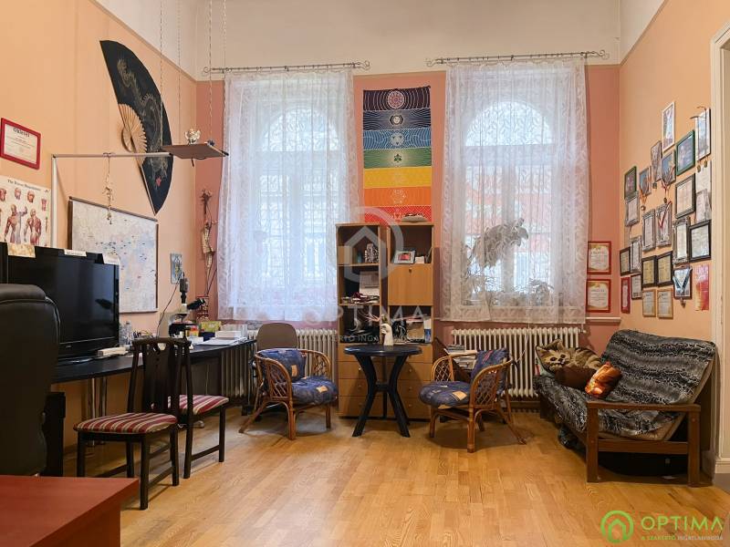 TÁGAS POLGÁRI LAKÁS A II. JÁNOS PÁL PÁPA TÉR MELLETTKözvetlenül a II. János Pál pápa tér szomszédságában egy 94 m²-es, nagypolgári stílusú, földszinti lakás várja új tulajdonosát. A klasszikus belmagasság és a tágas terek eleganciája modern lehetőségekkel párosul.A lakás kiváló adottságokkal rendelkezik: 4,35 méteres belmagasságának köszönhetően több galéria is kialakításra került, amelyek praktikus tárolási funkciót látnak el. A lakás elosztása ideális: tágas előszoba, két nagy méretű, világos szoba, külön konyha, fürdőszoba, WC, tároló és egy hálófülke szolgálja a kényelmet. A tér átrendezésével akár több önálló lakás kialakítására is van lehetőség.Az ELEKTROMOS HÁLÓZAT CSERÉJE és az ÚJ CIRKÓ KAZÁN beszerelése már megtörtént, így a műszaki alapok rendben vannak, a belső terek pedig szabadon formálhatók.A környék folyamatosan fejlődő, karakteres városi rész, amelyet zöld parkok, új kávézók és megújuló környezet jellemez – ideális választás saját otthon vagy befektetés céljára is.A KÖZLEKEDÉS kiváló, M4 metró, villamos- és buszjáratok néhány perc sétával elérhetők. Az utcában a PARKOLÁS KÖZTERÜLETEN LEHETSÉGES, és jellemzően könnyen található szabad hely.Az ingatlan TEHERMENTES, 1/1 TULAJDON, így gyorsan birtokba vehető.Irodának, rendelőnek, befektetésnek vagy egy tágas családi otthonnak is remek választás.A megtekintés telefonos egyeztetését este és hétvégén is szívesen intézem.