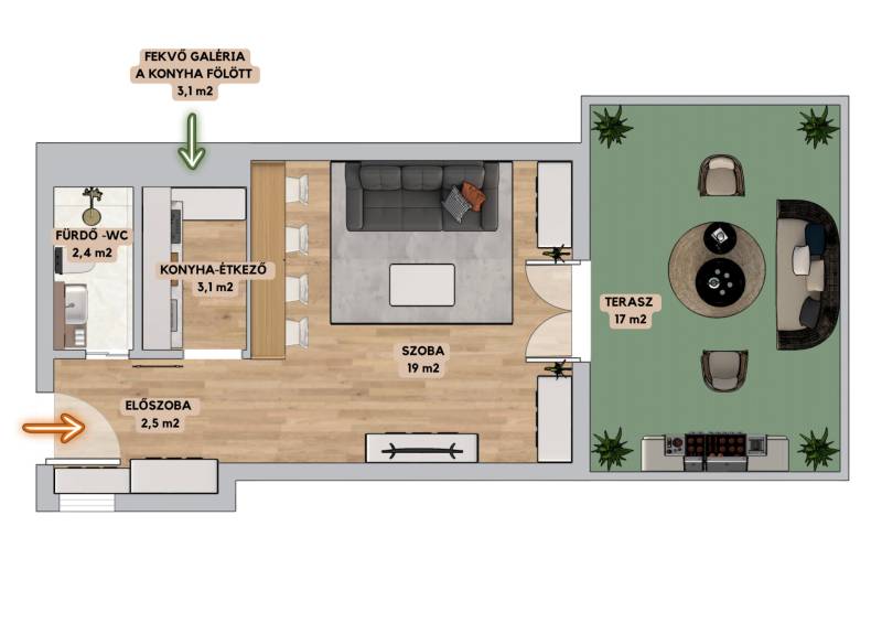 Budapest I. kerületében, Krisztinavárosban keresi új tulajdonosát egy 27 m2-es, TELJESKÖRŰEN FELÚJÍTOTT, 1 szobás, nagy teraszos lakás. Ha NÍVÓS KÖRNYÉKEN szeretné megtalálni hangulatos kis otthonát, vagy jól hasznosítható befektetését, akkor ezt a modern garzonlakást feltétlenül nézze meg!** KÖRNYÉK ÉS KÖZLEKEDÉS **- I. kerület, Krisztinaváros, a történelmi és kulturális örökség szívében található, KÖZPONTI elhelyezkedésű CSENDES utca.- PRÉMIUM TERÜLET a Budai Várnegyed és a Bécsi kapu közvetlen közelében..- A helynek van történelmi és esztétikai értéke is, ami plusz élményt ad a hétköznapokban.- A lakástól néhány perc alatt elérhető minden, ami a hétköznapokhoz szükséges.- Közelben bölcsőde, óvoda, Kormányablak, Önkormányzat, gyógyszertár, posta, bankok és szolgáltatók sokasága.- A Mammut bevásárlóközpont, a Széna tér, a Halászbástya, Budai vár, a Vérmező, a Tóth Árpád sétány 5 perces sétatávolság.- A Széll Kálmán téri közlekedési csomópont 2 perc gyalog, a város minden pontja könnyen megközelíthető.- A közkedvelt Fény utcai piacon jó minőségű, friss termelői áruval várják a vásárlókat.- Számos sportolási lehetőség a közeli Városmajor parkban és a Lite Wellness Clubban.- Karnyújtásnyira van a Millenáris és Szélkapu park, ahol a város egyik legjobb játszótere is található.- Parkolás szempontjából a környező utcák mindegyike fizető övezetes, de bejelentett lakcím esetén, kerületi parkoló kártya éves ötezer forintért kiváltható.** AMIT A HÁZRÓL TUDNI KELL **- 1930-ban épült, 5 szintes, 20 lakásos, tégla építésű társasház.- Korai modern stílusú KARBANTARTOTT ÉPÜLET, külső és belső homlokzata jó állapotú, lépcsőháza rendezett.- A ház műszakilag is rendben van, az elektromos hálózatot már kicserélték. a lépcsőházat és atetőt felújították. - Lakóközössége barátságos, befogadó közösség.** MIÉRT IDEÁLIS A LAKÁS? **- Félemeleti, 27 m2-es, 1 szobás, JÓL HASZNÁLHATÓ TEREKKEL rendelkező, garzonlakás.- Ötletesen és helykihasználás szempontjából ideálisan berendezett, TELJESKÖRŰEN FELÚJÍTOTT otthon.- A 310 cm-es belmagasság lehetővé tette egy 3 m2-es fekvő galéria kialakítását is a konyha felett.- Felosztása: előszoba, konyha-étkező, szoba, fekvő galéria, fürdőszoba toalettel, nagy méretű terasz.- Az előszobában és a szobában található három mennyezetig érő gardróbszekrény bőséges tárolóhelyet biztosít.- A szoba kényelmes nappaliként funkcionálhat, mivel a konyha fölé épített fekvőgaléria praktikusan biztosítja az alvás lehetőségét.- A 17 m2-es, műfűvel borított terasz ideális méretű pihenéshez és baráti összejövetelekhez.- A modern konyhagépekkel felszerelt konyhához kapcsolódik a 4 főnek is kényelmes étkezőpult.- A zuhanyzós fürdőszoba stílusos hidegburkolattal a többi helyiség laminált parkettával burkolt.- A kétrétegű, hőszigetelt műanyag nyílászáró redőnnyel felszerelt.- A fűtés elektromos padlófűtéssel, hűtése hűtő-fűtő klímával megoldott, a melegvíz ellátásáról Ariston villanybojler gondoskodik.- Közös költség 13 188 Ft/hó, amely tartalmazza a vízdíjat, felújítási alapot, lépcsőház takarítását és a szemétszállítást is.- A lakásban található teljes beépített bútorzat (igény esetén a teljes bútorzat) vételár részét képezi.- A társasház pincéjében egy 4 m2-es zárható tároló is a lakáshoz tartozik.** A LAKÁS MEGTEKINTHETŐ **- Személyesen, előre egyeztetett időpontban.** FINANSZÍROZÁSI KÉRDÉSEKBEN– ONLINE IS – SEGÍTÜNK **- Bank-független hitelcenterünk díjmentesen versenyezteti az összes bank és hitelintézet ajánlatát.- Önnek csak annyi a dolga, hogy egyeztet munkatársunkkal, majd kiválasztja a hosszú távon is legkedvezőbb konstrukciót.- Szakértőink 20 év tapasztalattal, fogyasztóbarát lakáshitelekkel, babaváró hitellel és teljes körű CSOK Plusz és OTTHON START program ügyintézéssel várják.- Időpont-egyeztetéssel munkaidő után is elérhetők.Ha egy modern, minőségi felújításon átesett, könnyen kiadható garzonlakást, vagy hangulatos, gazdaságosan fenntartható otthont keres prémium környéken ezt érdemes személyesen is megismernie. Kiválóan kihasznált terek, modern kialakítás várja — zöldövezetben, mégis a belváros közelében. Ritka lehetőség, ne hagyja ki!Érdeklődés esetén VÁROM HÍVÁSÁT a hét minden napján! Kérdéseire szívesen válaszolok.