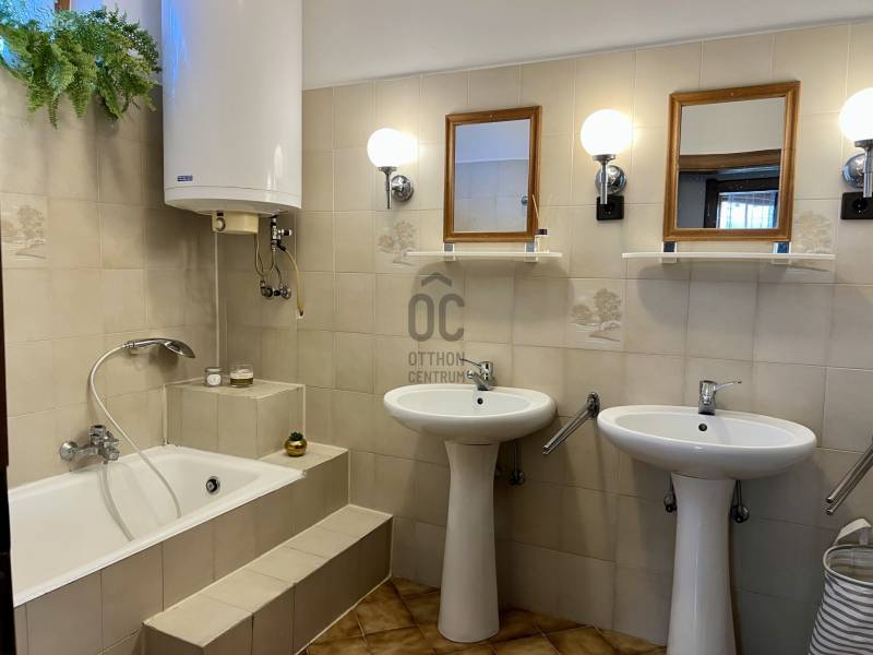 Vannak házak, amelyekről már az első percben érzed, hogy különlegesek. Ez az ingatlan is ilyen – meleg, hívogató és tele lehetőséggel!Balatonlellén, központi, mégis csendes és biztonságos utcában, az óvoda, iskola és bölcsőde közelében eladó egy sokoldalúan hasznosítható, tágas családi ház melléképülettel és gyümölcsfákkal teli kerttel.A Balaton szabadstrandja mindössze 5–6 perc kerékpárral, így az otthon és a nyaralás élménye tökéletesen összefonódik.Telek: 1122 nm teljesen körbekerítettGyümölcsfákkal tarkított (füge, cseresznye, dió, málna) árnyas kert.FÖLDSZINT: 108 m²*előszoba* új konyha beépített gépekkel (sütő, mosogatógép, mikró)* hatalmas étkező-nappali (déli tájolású, világos terek)* 2 hálószoba* fürdőszoba + külön WC* fedett, árnyas terasz: 34 m²EMELET: 107 nm, külön bejárattal is megközelíthető * két apartmanná alakítható*4 szoba*2 fürdő*2 minikonyhaIdeális több generáció számára vagy nyaraltatásraMűszaki adatok:Porotherm tégla falazatBramac tetőcserépEgyedi gyártású tölgyfa nyílászárók, díszes tömörfa ajtókeretek, kazettás mennyezetKitűnő állapotú, újrarakatott cserépkályhaGázkazán + gázkonvektoros fűtésMelegvíz villanybojlerről3×20 A nappali + 3×20 A éjszakai áram, földkábeles csatlakozássalPince: 23 m² – bor, zöldség, növények tárolására kiválóMelléképület és parkolás*Felújítandó földszintes nyári lak garázzsal*Fedett autóbeálló és garázs – akár hajótárolásra is megfelelő, vállalkozásra, műhelynek, táncteremnek is alkalmas lehet.Elhelyezkedés és környezet:Balaton: 2 km – kerékpárral 6 percIskola: 300 mÓvoda és bölcsőde: 200 mA közelben minden elérhető: Lidl, Aldi, Spar, Jysk, Rossmann, DM, mentőállomás, kikötő, hajóállomásA tágas terek, minőségi anyagok és a kiváló elhelyezkedés egyaránt hozzájárulnak ahhoz, hogy ez az otthon hosszú távon értékálló befektetés legyen.OTTHON START, CSOK+ igényelhető az ingatlanra.További információért keressen bátran!
