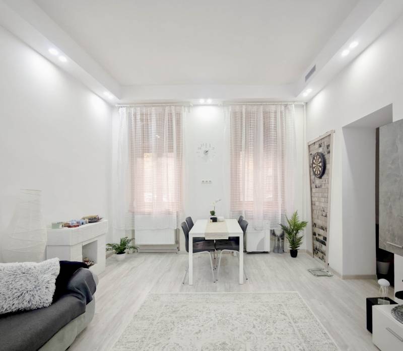 Új tulajdonosát keresi Újpesten egy csendes, felújított, földszinti lakás jó közlekedéssel és infrastruktúrával. Ha szép állapotú, alacsony fenntartási költségű, élhető terekkel rendelkező ingatlant keres, akkor ezt ne hagyja ki!A KÖRNYÉKRŐL:- Budapest IV. kerülete, Újpest, Erkel Gyula utca.- Funkcionálisan jól ellátott környék, fejlődő kerületi központ közelében.- Gyakorlatilag Újpest-Központ vonzáskörzete, gyalog, autóval és tömegközlekedéssel is gyorsan elérhető.- Több buszjárat megállója megtalálható sétatávolságban, a legközelebbi buszmegálló 300 méter.- Újpest-Központ és az M3 metró 7 perc busszal, 13 perc gyalogosan.- 10 perces körön belül elérhető minden, ami a napi élethez szükséges.A HÁZRÓL:- 1960-ban épült, 16 lakásos, földszintes, téglaépület.- Kívül-belül átlagos állapotú.- Rendezett közös belső udvarral rendelkezik.A LAKÁSRÓL:- Földszinti, 48 m2-es, 2 szobás, felújított ingatlan.- Kifejezetten csendes és hangulatos, fiatalos otthon.- Rendkívül praktikus elrendezésű, modern kialakítású, élhető terekkel rendelkezik.- Jelenlegi felosztása: előszoba-konyha, nappali + 1 hálószoba, zuhanyzós fürdőszoba-wc.- A hálószoba a nappaliból nyílik, a szobák az utcára néznek.- A nyílászárók részben műanyagok, részben modern fa szerkezetű ablakok.- A lakásban lévő burkolatok modern színvilágúak és jó minőségűek.- A lakáshoz tartozik egy 6 m2-es saját pincerekesz.AZ INGATLAN MEGTEKINTHETŐ:- személyesen,- online személyes bejelentkezéssel.FINANSZÍROZÁSI KÉRDÉSEKBEN ONLINE ÜGYINTÉZÉSSEL IS SEGÍTÜNK:- Bank-független hitelcenterünk díjmentesen versenyezteti minden bank és hitelintézet ajánlatát.- Önnek nincs más dolga, mint beszélgetni munkatársunkkal, majd a megversenyeztetett ajánlatokból kiválasztani a hosszútávon is a legmegfelelőbb konstrukciót.- Szakértőink 20 éves szakmai tapasztalattal és egyedi igényekre szabott, fogyasztóbarát lakáshitelekkel, babaváró hitellel, teljes körű CSOK PLUSZ és OTTHON START program ügyintézéssel várják Önt.- Előre egyeztetve akár a normál munkaidő után is.Kifejezetten ajánlom pároknak, vagy egyedülállók részére. Könnyű megközelíthetősége és a környék ellátottsága miatt bármely korosztály számára kényelmes otthon lehet.További információért és megtekintési időpontért hívjon bizalommal.