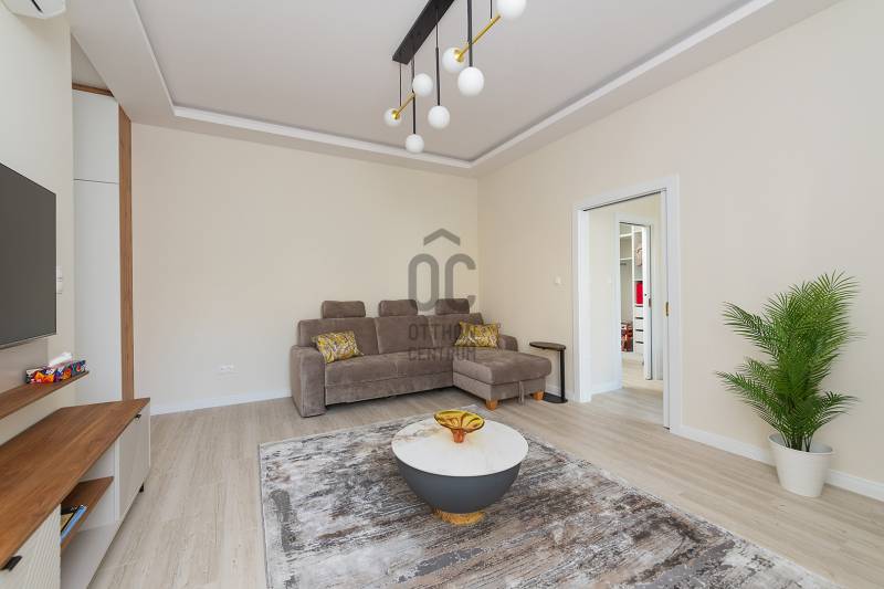 Budapest V. kerületében, Parlament közelében kiadó egy igényesen és frissen felújított, erkélyes lakás egy rendezett, liftes társasházban. A lakás tágas nappaliból, egy hálószobából és egy külön gardróbszobából áll, minden helyiség kiváló állapotban van. Teljes berendezéssel, gépesítéssel kiadó, ide valóban csak a személyes dolgait kell hoznia! Modern konyha, letisztult fürdőszoba, új nyílászárók és igényes burkolatok teszik komfortossá az otthont. Nyugati tájolású, gyönyörű napfényes lakás, alacsony rezsije van. LAKÁS FELSZERELÉSE-új biztonsági ajtó-klímák minden helyiségben- új bútorok, beépített szekrények-kávéfőző- TV- mosógép, szárítógépKIVÁLÓ KÖZLEKEDÉSA környék közlekedése elsőrangú. Autóra nem lesz szüksége, hiszen a teljes belváros gyalogos távolságra elérhető, tömegközlekedés 1-2 percre található:4-6-os villamosM3 metró: Nyugati pályaudvar megállóBuszok: 15, 9, 70, 78, 73INFRASTUKTÚRAKossuth-tér, Duna-part, Parlament néhány perc gyalogos távolságra elérhető. Minden utcasarkon található egy kávézó, étterem, galériák...A helyszín belvárosi, de maga a lakás csendes tájolású!