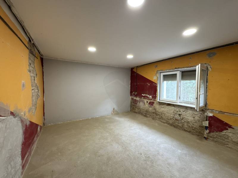 Eladó felújítandó családi ház Erdőkertesen, jó elosztás, garázs, napelem!Alapterület: 76,37 m² + 34 m² fedett teraszTelek: 675 nmSzobák száma: 2 szoba + konyha + fürdő + tárolóÁllapot: Teljesen felújítandóFűtés: egyedi (korábbi radiátorok részben megvannak)Parkolás: 2 állásos garázs elektromos kapuvalExtrák: napelemrendszer, beépített terasz, tágas kertLeírás:Erdőkertes csendes, zöldövezeti részén eladásra kínálunk egy 76,37 m²-es, kisméretű téglából épült családi házat, mely teljes belső felújítást igényel.Az ingatlan 2 szobából, konyhából, fürdőszobából, egy kis tárolóból, valamint egy fedett 34 m²-es teraszból áll. A mellékelt fotók jól mutatják az ingatlan jelenlegi állapotát, ami a kreatív vevők számára átalakítási szabadságot biztosít.A házhoz tartozik egy tágas, kétállásos garázs, mely elektromos kapuval rendelkezik. A garázs falai dekoratív bontott téglával burkoltak, a tetőszerkezet újabb, és a tér világos, rendezhető.A konyha és a szobák jelenleg bontott állapotban vannak – részben vakolatlan falak, új mennyezeti világítás, részben új nyílászárók és burkolat nélküli padló jellemzi őket. A konyhában néhány beépített elem már megtalálható.A hátsó kert gondozásra vár, de kiváló adottságokkal rendelkezik: zöld, napos, több gyümölcsfával és bokorral, valamint egy kis veteményes vagy játszótér is könnyedén kialakítható.További jellemzők:TéglaépítésűNapelemrendszerElektromos garázskapuRészben új nyílászárókFedett teraszCsendes, kertvárosi környezetFelújítóknak, befektetőknek ideálisKiknek ajánljuk?Felújításban gondolkodóknak, akik saját ízlés szerint alakítanák ki otthonukatBefektetőknek, akik értéknövelésben és kiadásban is gondolkodnakCsaládosoknak, akik szeretnének kertes házba költözni elérhető áron