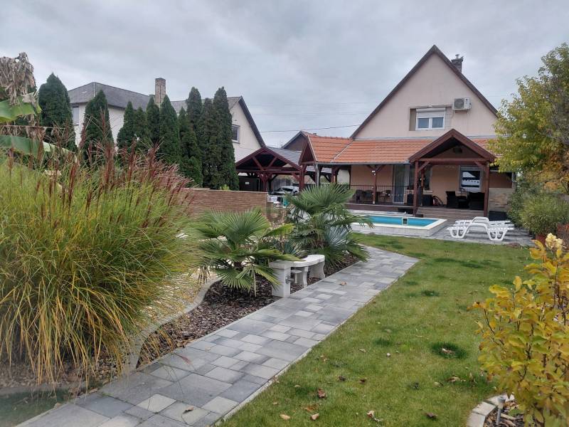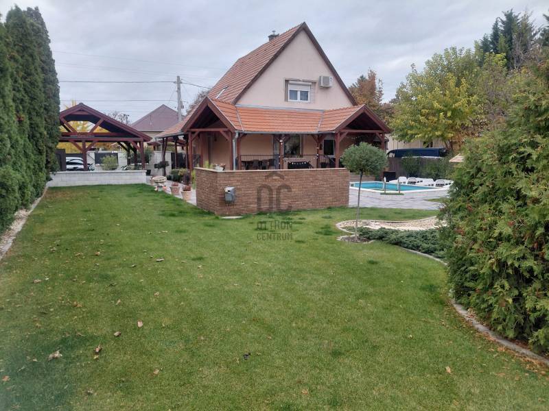 Mediterrán kert saját medencével – nyugalom és kényelem Taksonyban, Dunaharasztitól pár percre!Képzeld el, hogy minden reggel egy mediterrán kert látványa fogad: csillogó medence, illatozó növények, árnyas pihenőrész és egy hangulatos kerti sütögető. Egy hely, ahol tényleg lelassulhatsz – mégis közel maradsz a mindennapi városi élethez.Ez a 127 m²-es, kétszintes, téglaépítésű, szigetelt családi ház egy csodásan parkosított 811 m²-es telken vár rád. Az emelet 2024-ben teljes felújítást kapott, így az ingatlanba csak be kell költöznöd.A ház elosztása:Földszint:• előszoba• tágas nappali• konyha + étkező• hálószoba• fürdőszoba• lépcső alatti gardróbEmelet:• két szoba• közlekedő• fürdőszoba• gardróbVilágos terek, jól kihasznált alaprajz, kényelmes családi életre tervezve.A kert – a telek igazi ékszere, mediterrán oázis:• saját medence• halastó• automata öntözőrendszer• kerti sütögető• gondozott mediterrán növényzet• árnyékos pihenőrész• körbeölelő, hangulatos terasz 16,7 m²-es pince A kert végében egy 8 m²-es tároló vagy vállalkozásra is alkalmas helyiség.A ház előtt 2024-ben készült automata kapuval ellátott dupla autóbeálló és térkövezett parkoló.A telefonról vezérelhető kamerarendszer gondoskodik a modern biztonságról.Elhelyezkedés és közlekedés – minden közel van, mégis csendes:• Taksony egyik nyugodt, rendezett utcájában• Dunaharaszti pár perc autóval• Budapest autóval 15–20 perc• Közeli HÉV és buszjáratok• Iskola, óvoda, rendelő, boltok, gyógyszertár, sportpálya, éttermek – minden a közelbenEz az ingatlan több mint egy ház: egy saját mediterrán oázis, ahol minden adott a kikapcsolódáshoz, a baráti és családi pillanatokhoz, és a nyugodt, kényelmes mindennapokhoz.Szeretnéd élőben is átélni a hangulatát? Szívesen mutatom!