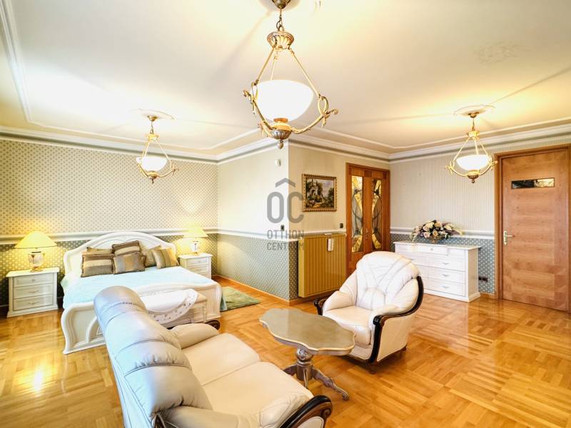 Fedezze fel álmai otthonát Diósdon – háromszintes, hét szobás, nagyvonalú családi ház eladóDiósd egyik legkedveltebb, csendes utcájában eladó egy 479 m²-es, háromszintes, exkluzív családi ház, amelyet térérzet, elegancia és átgondolt funkcionalitás jellemez. Az ingatlan egy 1111 m²-es, parkosított, szobrokkal díszített kertben helyezkedik el, ahol fűthető, római lépcsős medence és 12 m²-es télikert is szolgálja a pihenést.Földszint – a klasszikus elegancia szintjeA házba egy tágas előszobán és közlekedőn át jutunk, ahonnan megérkezünk a 36 m²-es nappaliba, amelyhez közvetlenül kapcsolódik a 12 m²-es télikertA 30 m²-es konyha–étkező–kamra egység családi és baráti összejövetelekhez ideális helyszín.Ezen a szinten található továbbá:37 m²-es hálószoba,12 m²-es gardrób,13 m²-es elegáns fürdőszoba,külön vendégmosdó,36,5 m²-es kétállásos garázs,valamint egy 13 m²-es terasz, amely a kert felé nyílik.Első emelet – a nagyvonalú terek birodalmaA felső szint 4,8 méteres belmagasságával és 73 m²-es nappali–társalgójával igazi különlegesség.Innen nyílnak a hálószobák, mind saját gardróbbal:25 m²-es hálószoba + 22 m²-es gardróbszoba,26 m²-es vendégszoba+ 21 m²-es gardróbszoba. Ezen a szinten található egy 14 m²-es, luxus kialakítású fürdőszoba valamint teraszkapcsolat is. A faburkolatú, üvegkorlátos lépcsőháza ház egyik legszebb, látványos eleme.Kertszint – külön élettér közvetlen kertkapcsolattalAz alsó szint egy önálló, teljes értékű élettér:konyha és étkezőnappali/vendégtér,fürdőszobakazánház és mosókonyhaközvetlen kijárat a gondozott kertbeFelszereltség és technológia- Vaillant gázkazán, padló- és radiátoros fűtés kombinációja-Szintenként szabályozható termosztátok-6 db Panasonic inverteres hűtő-fűtő klíma-Hóolvasztó rendszer a garázsbejárónál-A medencéhez külön fűtőkör-Automata, kútról üzemelő öntözőrendszerA kert – elegancia és nyugalomA parkosított, örökzöldekkel és díszcserjékkel beültetett kert a ház méltó folytatása.A fűthető, római lépcsős medence, a szobrok valamint a télikert együttese páratlan harmóniát teremt.Ez az ingatlan azok számára ideális választás, akik nem csupán házat, hanem életstílust keresnek – ahol a tér, az elegancia és a kifinomult részletek találkoznak.
