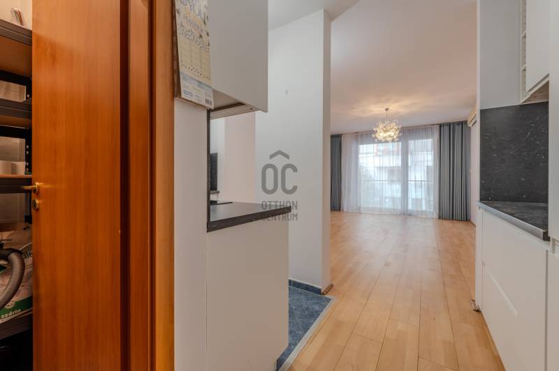 Exkluzív Otthon a Díjnyertes \"Római Kert\" Lakóparkban – Újlipótváros Szívében! (1132 Budapest, Visegrádi út 80.)Fedezze fel ezt a kivételes, újszerű (2022) ingatlant Budapest szívében, az Újlipótvárosban, ahol a modern, magas minőségű életstílus találkozik a csendes lakóparki környezet nyugalmával és a kiemelkedő infrastruktúrával!A Lakópark Előnyei és a Prémium KörnyezetA lakás egy 2002-ben átadott, az Autóker által épített \"Római Kert\" lakóparkban található. Ez az épületegyüttes:Többszörös díjnyertes: Kiemelkedő építészeti megoldásai és gyönyörű, gondozott zöldterülete miatt vált elismertté.Zárt és Biztonságos: A lakók kényelmét és biztonságát 24 órás portaszolgálat garantálja.Gondozott, Belső Park: A házak által körbefogott területen egy különlegesen szépen ápolt, díjnyertes közös díszkert biztosítja a nyugodt pihenést, távol a város zajától.Teremgarázs: A kényelmes és biztonságos parkolást a ház teremgarázsa teszi lehetővé (a terem garázshely vásárolható/bérelhető a ház más lakóitól).Lakás JellemzőkEz az I. emeleti, 91 négyzetméteres lakás kiváló állapotú, prémium kivitelezésű, ami a beköltözés utáni felújítási munkálatok aggodalmait teljesen kizárja.Elosztás: Négy tágas szoba, mely ideális választás családok, fiatal párok vagy befektetők számára egyaránt.Konyha: Világos nappali amerikai konyhával, modern dizájnnal és beépített bútorokkal.Kényelem: Két fürdőszoba és kettő összesen 14 négyzetméteres, intim terasz, ahonnan élvezheti a környék panorámáját.Fűtés: Házközponti fűtés egyedi méréssel, ami kedvező fűtési költségeket garantál.Kiemelkedő Újlipótvárosi InfrastruktúraAz Újlipótváros kiemelt lokációja nem csupán kényelmes, de kiemelkedően előnyös a mindennapi élet szempontjából is. A környék ellátottsága és a közlekedés tökéletes:Kultúra és Szabadidő: Sétatávolságra található a RaM – Radnóti Miklós Művelődési Központ, amely színházzal, könyvtárral, étteremmel (VakVarjú) és közösségi programokkal várja az itt lakókat.Oktatás: Bölcsőde, óvoda, iskola könnyen elérhető közelségben 1-2 perc séta.Közlekedés: Kiváló tömegközlekedési csomópontok (pl. 4-6-os villamos, M3 metró, 15-ös busz, trolibuszok) gyors elérést biztosítanak a belváros és a város bármely része felé.Szolgáltatások: Számos bolt, étterem, kávézó, gyógyszertár és a Duna-part közelsége teszi teljessé a kényelmet.A lakás akadálymentesített és biztonsági ajtóval felszerelt, így minden szempontból garantálja a gondtalan és kényelmes otthont.Ne maradjon le erről a páratlan lehetőségről! Tekintse meg személyesen, és tapasztalja meg a \"Római Kert\" lakópark nyújtotta prémium életérzést!
