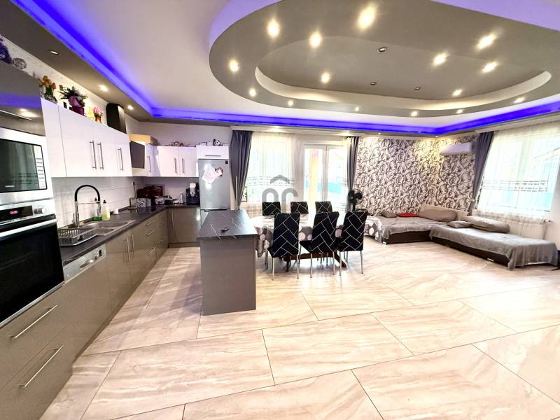 Őrbottyán frekventált, mégis csendes, központi övezetében kínáljuk megvételre ezt a 111 m²-es, 2020-ban újjáépített, magas műszaki tartalommal rendelkező családi házat, melyet egy 1375 m²-es, kivételes adottságú telek ölel körbe.A ház 30-as Porothermből épült újra, 15 cm-es homlokzati szigeteléssel és 20 cm-es födémszigeteléssel kiegészítve. A belső terekben minőségi olasz burkolatok, gondosan megtervezett terek és korszerű gépészet várja a leendő tulajdonost. A fűtést Baxi gázcirkó, a hűtést inverteres klíma biztosítja, a nappaliban és fürdőben padlófűtéssel kiegészítve.A telek 21 méteres utcafronttal, 65 méteres hosszúsággal, sík, jól tagolható kialakítással rendelkezik – ritkaság a környéken. A 26 m²-es fedett terasz befejezése az új tulajdonos ízlésére bízható.A bútorzat igény szerint az ingatlannal együtt megvásárolható.Ez az otthon azok számára készült, akik értékelik a korszerű műszaki tartalmat, a nagy telek adta szabadságot és a nyugodt, mégis központi elhelyezkedést.Ha a leírtak és a látottak alapján felkeltettem az érdeklődését, megelőlegezett bizalmát előre is megköszönve, akár a hétvégén is várom szíves jelentkezését!