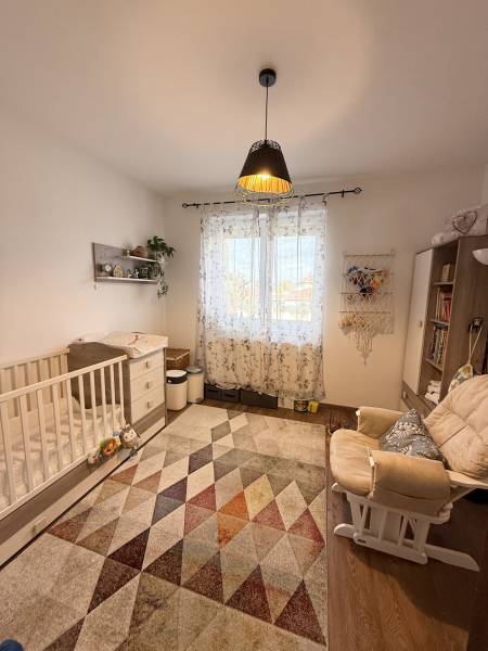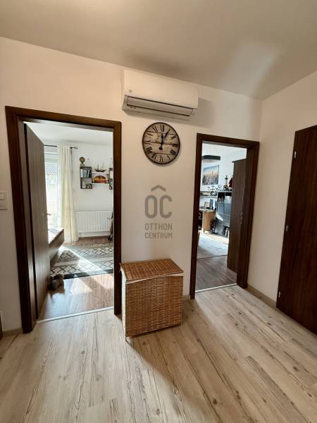 Dunaharaszti csendes, fiatalos kertvárosi részén, a Bezerédi -lakóparkban található ez a kiváló állapotú modern sorházi lakás, amely ideális választás kisebb és nagyobb család számára egyaránt. Az ingatlan alapterülete 142 nm, beosztása nagyon praktikus. Három szintes, benne a nappalin kívül 4 szoba lett kialakítva, lehetőséget adva a családi, baráti együttlétekre és a pihenésre. A földszinten egy gyönyörű, elegáns, tágas konyha, fényárban úszó amerikai konyhás nappali- étkező együttese fogad minket, nagyon helyes kis terasszal, kerttel, grillezővel, igazi vendégmarasztaló hangulattal, valamint az előszobából külön nyíló fürdőszoba WC-vel. Szintén az előszobából nyílik egy ajtó a garázsba, így az autóból kiszállva közvetlenül be tudunk jönni a lakásba, míg egy másik autóval a garázs elé, az előkertbe is beállhatunk. Az alsó szint melegsége, a konyhában lévő sok kis spotlámpa, a LED lámpák, a fények játéka minden napszakban különleges hangulatot varázsolnak. A világos, barátságos és egymástól mégis szeparált hálószobák az emeleten kaptak helyet, a teljes nyugalmat biztosítva. A szülői háló erkély kapcsolatos. Ezen a szinten egy fürdőszoba és egy külön WC is ki lett alakítva. A legfelső szint, a tetőtér szintén be lett építve, itt egy hatalmas szoba, egy gardrób található, mely ideális lehet akár dolgozó, vendég, vagy hobbiszobának , ha esetleg nincs szükség ennyi hálószobára. Két fürdőszoba, összesen három WC biztosítja, hogy a reggeli rohanás során sem kell várakoznia a lakóknak, mindenki számára elegendő az élettér.A ház fűtése a téli hónapokban gázcirkóval megoldott, az alsó szinten padlófűtés, a felső két szinten radiátorok vannak, míg a nyári melegben 2 klíma nyújt felfrissülést. A házba vízlágyító is beszerelésre került, a nyílászárók redőnnyel, szúnyoghálóval felszereltek. A rendezett kis kertjében fűnyírással nem kell bajlódni, de a a sziklakert, a virágágyások mégis tökéletes kikapcsolódást biztosítanak. Az apró, minden évszakban valami szépséget rejtő díszkertben fűszernövények, virágok egyaránt helyet kaptak. A társasház a pár éve átadott Bezerédi Sportpark szomszédságában található, mely Dunaharaszti legnagyobb épített szabadtéri közösségi tere, ahol rengeteg lehetőség várja a sportolni, kikapcsolódni vágyó felnőtteket és gyerekeket . Itt szinte minden megtalálható, egy modern, zárt játszótér, ping-pong asztalok, röplabda/lábtenisz/tollaslabda pálya, streetball pálya, kispályás foci-és kézilabda pálya, közösségi terekkel, padokkal, mosdókkal.Kiváló elhelyezkedésének köszönhetően a környék ellátottsága is kiemelkedő, hiszen a közeli boltok, Lidl, ALDI, Tesco, óvodák, bölcsödék, játszóterek mindössze pár percnyi sétára találhatóak. A Dunaharaszti közlekedési lehetőségei is kedvezőek, Budapest központja gyorsan és egyszerűen megközelíthető autóval, busszal, de a vasúti közlekedés fejlesztése is folyamatban van. A környék biztonságos és csendes, ideális választás gyermekes családok számára, akik értékelik a nyugodt, zöldövezeti környezetet. Amennyiben felkeltette érdeklődését ez a kivételes ingatlan, ne habozzon kapcsolatba lépni velem!