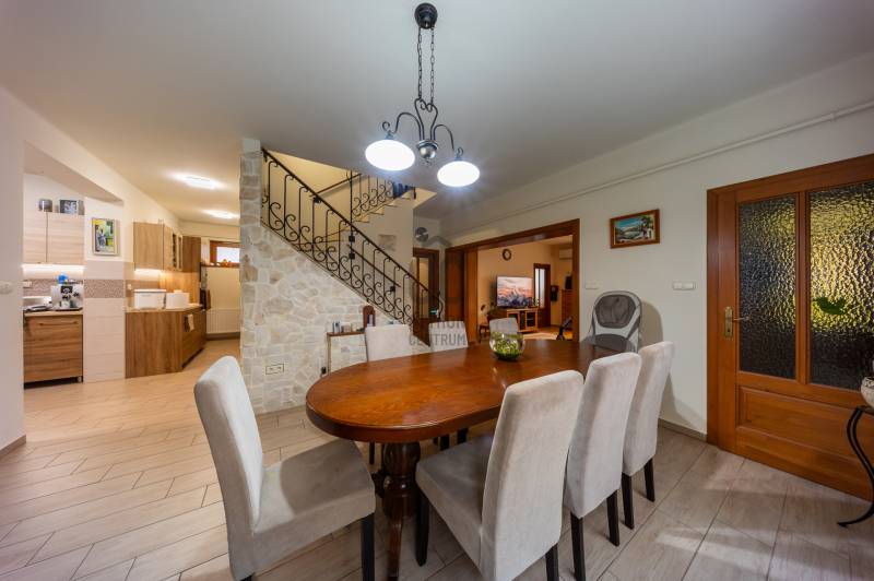 Hajdúszoboszló frekventált, mégis csendes, családias övezetében eladó egy kiváló állapotú, tágas, 2 szintes családi ház, 740 m²-es, gondozott, parkosított telken.A ház 1985-ben épült, majd teljes körű felújítást kapott, amely során modern, prémium anyagokkal és igényes kivitelezéssel újult meg kívül-belül.Felújítás tartalma:- új tetőszerkezet- korszerű fűtésrendszer és gépészet- modern, minőségi burkolatok- teljesen új konyha és fürdőszobák- új, igényesen kialakított kerítés- 3 rétegű, hőszigetelt nyílászárók- cirkófűtés + hűtő-fűtő klímaA felújítás óta az ingatlan folyamatosan karbantartott, így azonnal költözhető, rejtett költségek nélkül.Helyiségek elosztása:Földszint: világos nappali, hálószoba, amerikai konyha étkezővel, kamra, gardrób, fürdőszoba, külön WC, előszoba, tároló.Emelet: három különnyíló hálószoba, gardrób, fürdőszoba, erkély.Különálló melléképület 73 m²-es – rengeteg lehetőséggel:– két garázs,– nyárikonyha,– kerékpártároló,– WC,– valamint egy 17 m²-es fedett kerti kiülő.Akár vendégháznak, otthoni vállalkozásnak vagy második generációnak is átalakítható.A kert parkosított, rendezett, igazi nyugalomsziget – tökéletes családi és baráti összejövetelekhez.Miért tökéletes választás?- prémium minőségű felújítás- nagy, élhető terek- rendezett, gondozott kert- melléképület rengeteg felhasználási lehetőséggel- dupla garázs- csendes, mégis központi elhelyezkedés- azonnal költözhető állapotTökéletes nagyobb családoknak, két generáció számára vagy akár vállalkozásra is!Hívjon, és nézze meg mielőbb ezt az igazán kivételes lehetőséget!