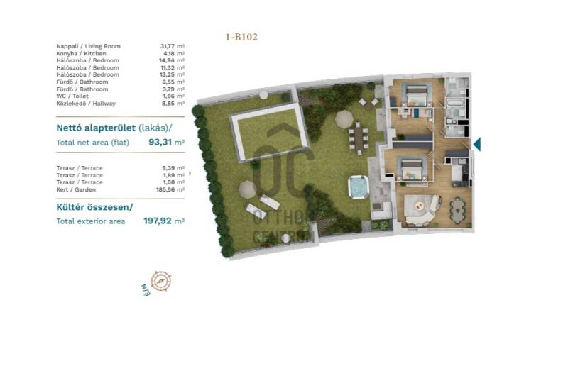 Épületek Új Dimenziója!Eladó egy lenyűgöző, 93 m² alapterületű, nappali + 3 hálószobás, kifinomult design lakás, amelyhez egy impozáns 185 m² saját tetőtersz tartozik, valamint egy 12 m² terasz tartozik.Az ingatlan az épület 1.emeleten helyezkedik el, a kertkapcsolatos tetőteraszra, mindegyik szobából ki lehet menni.A teraszról bazar kilátás nyilik a dunára, valamint a városra. Délkeleti, déli, valamint deélnyugati fekvésének köszönhetően nagyon világos.A tulajdonosok kényelmét biztosítja a két fürdőszoba. Tökéletes választás mindazoknak, akik szeretik a tágas tereket, fontos számukra vízparti hangulat, elegáns és nyugodt környezet.A lakás különleges elhelyezkedésének déli délkeleti és délnyugati fekfésének köszönhetően kivételes benapozottságot élvez, míg a közeli Duna-part elegáns és pihentető hangulatot biztosít.Az épület prémium szolgáltatásai:- 0–24 órás portaszolgálat és teljes körű biztonsági kamerarendszer- Gondozott belső kertek, játszótér a gyermekeknek- Elegáns klubszoba és exkluzív meeting room- Gyerekbarát játszótér, tágas és gondozott belső kertek- Stílusos klubszoba / meeting roomA projekt kiemelkedő műszaki tartalommal és prémium minőségű kivitelezéssel valósult meg.Gépkocsibeálló és tároló opcionálisan választhatók.5% ÁFA VISSZAIGÉNYELHETŐ MAGÁNSZEMÉLYEKNEK – ROZSDAÖVEZETI KEDVEZMÉNYTovábbi részletekért keressen bizalommal!Projekt bemutatásaA Vizafogó déli csücskében épülő, egyedüálló projekt legszebb lakásai várják új lakóikat..A legkülönlegesebb Duna-parti projekt kiváló tervezői munka eredménye.Egyedülálló forma és lokáció teszi különlegessé ezt a társasházat.Változatos elrendezésű lakások.Energiahatékony, fenntartható megoldások.Igényes kivitelezés.Kiváló lokáció.A beruházás rozsdaövezeti besorolású : az itt megépülő lakások után fizetendő 5%-os Áfát a jogszabályi feltételeket teljesítő vásárlók vissza nem térítendő állami támogatásként a 444/2021. (VII. 23.) Korm. rendeletben foglaltaknak megfelelően visszaigényelhetik.