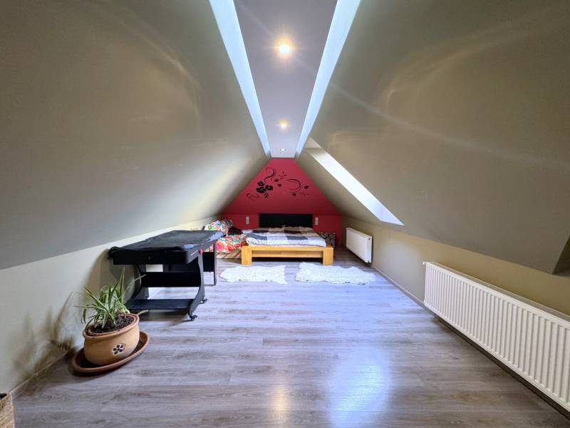 Eladóvá vált egy 190nm-es, 6 szobás önálló családi ház Erdőkertesen 870nm-es telekkel!Jó közlekedéssel, ellátottsággal mégis csendes, intim kerttel!Miért pont ezt válaszd?+ 2011-ben épült tégla ház, ami már csak rád és családodra vár. Az 5db hálószobának és a 2 fürdőnek köszönhetően itt mindenki el fog férni.+ Az alsó 136nm-es szinten amerikai konyhás-nappali a ház központi része, ahol még egy vízteres kandalló is ki lett építve.+ Külön fürdő-wc, vendég mosdó, háztartási helyiség és még egy két állásos garázs fokozza a kényelmet és a komfort érzetet.+ A két alsó hálószoba tökéletes home officenak és vendég szobának is, de akár egybe is nyitható, ha erre van szükséged.+ A 20nm-es terasz végig fedett, nagyobb vendégségnek is ideális.+ A 66nm-es tetőtérben egy második fürdőszoba is ki lett alakítva, továbbá 3 db hálószoba amihez még saját gardróbok is ki lettek építve.+ Mindhárom hálószoba hűtő-fűtő klímával felszerelt és világos.+ Több fűtési lehetőség van mivel kondenzációs gáz-kazánon kívül akár a nappaliban található kandalló is elláthatja a teljes ház fűtését hozzá mindenhol radiátorokkal.+ Műszakilag és esztétikailag is jó állapotban van a teljes ház, így tisztasági festésen kívül nem kell rá költeni.+ Az 870nm-es telek pont elég, hogy kényelmesen elférjen rajta akár medence, veteményes vagy játszótér a kicsiknek a már meglévő pergola mellé.+ Tömegközlekedés a háztól 500 méterre: 318,319, 393, 451, 453-as busz járatok, amikkel 5 megállóra található az Erdőkertesi vonatállomás.+ Az ingatlan jogilag rendezett, 3%-os Otthon Start hitelre tökéletesen megvásárolható és 2-3 hónapon belül birtokba vehető.+ Önálló helyrajzi számon van, kivett lakóház udvar megnevezéssel, jogilag rendezett.Ha olyan házat keresel, ami nemcsak tágas, hanem modern és igazán otthonos, akkor ez a jó választás neked és családodnak!