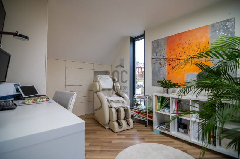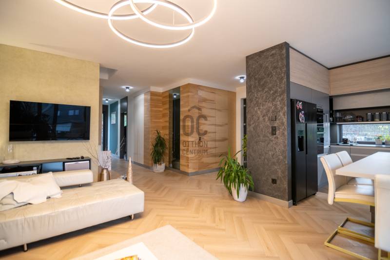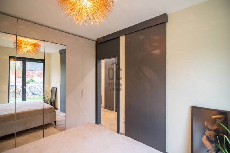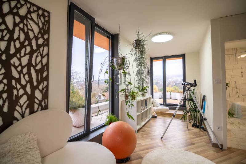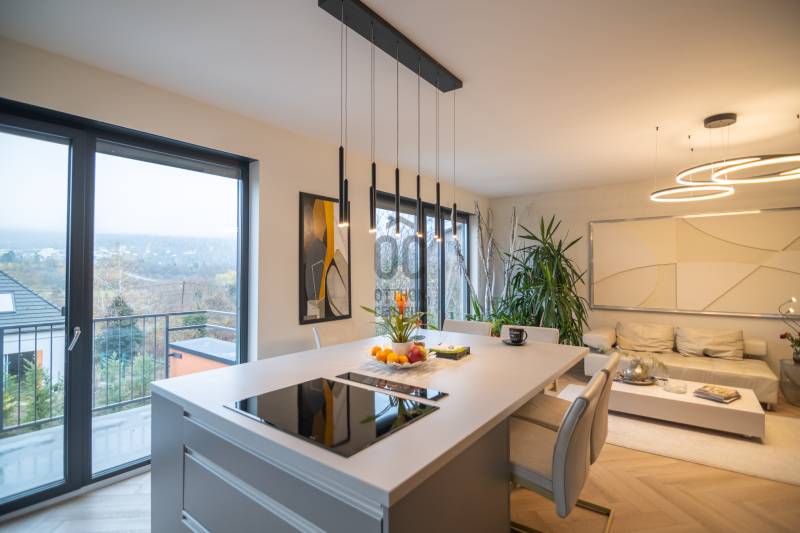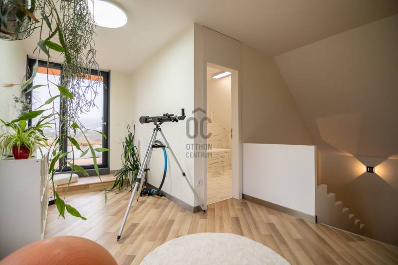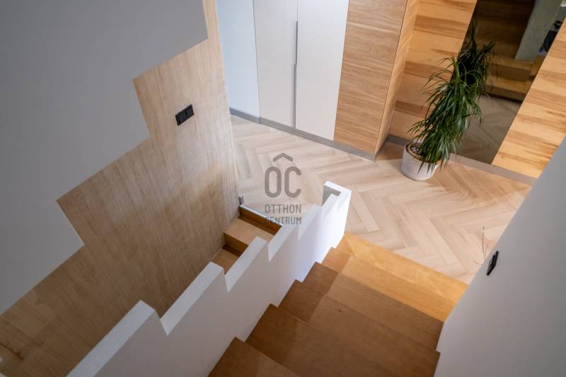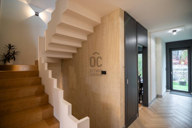 A III. kerület csendes, zöldövezeti részén, Ürömhegyen kínálunk eladásra egy minden részletében átgondolt, egyedi tervezésű otthont. A modern építészet és a természetközeli életstílus tökéletes harmóniában találkozik ebben a házban, amelyet kiemelkedő szakmai referenciákkal rendelkező belsőépítész alkotott meg.A ház egy rézsűs telek felső részén áll, így a panoráma és a fény egyszerre része a mindennapoknak. A letisztult formák, természetes anyagok és a napfényes terek elegáns, mégis otthonos hangulatot teremtenek.FŐBB JELLEMZŐK- Prokoncept építési rendszer, német fa szerkezeti elemek- A+ energetikai besorolás, levegő-víz hőszivattyús rendszer- Padlófűtés, mennyezethűtés-fűtés, hővisszanyerős szellőztetés előkészítve- Rehau nyílászárók, mindenhol motoros redőnyök- 20 millió Ft értékű egyedi konyha és beépített bútorzat- Beépített gépek: AEG főzőlap, Whirlpool sütő és mikro, Gorenje hűtő- Klarstein elszívó, fekete csaptelepek, screenüvegek a vizes helyiségekben- Jacuzzi-előkészítés a panorámás tetőteraszon- 2 autós garázs, elektromos töltő és napelem-előkészítésKERT ÉS KÜLSŐ TEREKA ház körül kialakított, mintegy 400 nm-es kert a természetes anyagokra és a rendezettségre épül.A geotextíliás alapozás és a dísznövényeknek köszönhetően a kert szinte gondozásmentes, mégis élő, harmonikus zöldfelületet kínál.A teraszról a panoráma a főszereplő: az előtető véd az esőtől és a naptól, a csöpögő rendszer pedig automatikusan öntözi a növényeket.A tér kialakítása lehetővé teszi jacuzzi vagy kisebb medence elhelyezését is – a nyugalom és a kényelem kompromisszumok nélkül adott.LOKÁCIÓ ÉS KÖZLEKEDÉS- 218-as buszmegálló pár lépésre található, közvetlen kapcsolatot biztosít Óbudával (Szentlélek tér).- Az Aranyvölgy vasútállomás 5 perc sétára elérhető, ahonnan a Nyugati pályaudvar 15 perc alatt megközelíthető.- Autóval az Árpád híd 15 perc alatt elérhető, a Bécsi úti bevásárlóközpontok (Tesco, Aldi, Praktiker, Decathlon) pedig mindössze néhány percre találhatók.A környék infrastruktúrája fejlett: iskola, óvoda, gyógyszertár, kisboltok és sportlehetőségek is könnyen elérhetők. A Csillaghegyi strandfürdő és uszoda autóval néhány perc, akárcsak a közeli túraútvonalak és kilátópontok.Földszint:Tágas, 42 nm-es nappali–konyha–étkező nagy üvegfelületekkel és dél-nyugati tájolással.Teljesen gépesített, beépített konyha étkezőpulttal kombinált főzőszigettel.Két külön nyíló, kertkapcsolatos hálószoba és zuhanyzós fürdő vendég-WC-vel.A nappaliból közvetlen kijárat az árnyékos teraszra és a gabion zuhanyfallal kialakított pihenőkertbe.Emelet:Világos, egybenyitott tér, amely igény szerint master bedroom + gardróbként is kialakítható.Külön fürdőszoba háztartási funkcióval és tárolókkal.A 28 nm-es panorámás tetőteraszról a Hármashatár-hegy látványa tárul elénk, jacuzzi-előkészítéssel.Garázsszint / Gépészet:Kétállásos garázs, automata kapuval.Szauna, kondiszoba vagy tároló kialakítására alkalmas hátsó tér.Hőszivattyús padló- és mennyezeti hűtés-fűtés, előkészített napelem és elektromos autótöltő csatlakozás.Ez az otthon azoknak szól, akik értékelik a modern építészet időtálló formavilágát, a természetes fényt, és a letisztult, gondosan megtervezett tereket.Ürömhegy egyik legszebb pontján található, ahol a panoráma, a nyugalom és a minőség valódi értékké válik.Amennyiben felkeltette az érdeklődését ez minden részletében művészien kidolgozott ingatlan, kérem keressen bizalommal!Díjmentes, bankfüggetlen hiteltanácsadással támogatjuk vevő ügyfeleinket a számukra legelőnyösebb finanszírozási döntések meghozatalában.Opcionálisan igénybe vehető kiegészítő szolgáltatásainkkal – mint ügyvédi közreműködés, energetikai tanúsítvány vagy villamos biztonsági felülvizsgálat – teljes körű szakmai támogatást nyújtunk az adásvétel folyamatának minden egyes lépésénél.