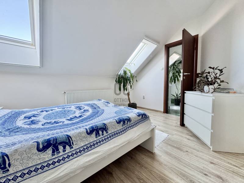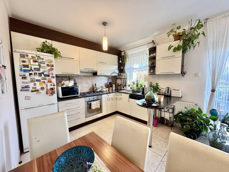 Eladóvá vált Fót, egyik legszebb részén, Királydombon, egy bruttó 110 nm-es, nettó 102 nm-es, 4 szobával+1 nappalival rendelkező, 2 fürdőszobával +1 mellékhelyiséggel, kamrával kiegészített, 200 nm-es telken húzódó, 2 teremgarázshellyel+1 nyitott kerítésen kívüli parkolóhellyel, 3 db tárolóval rendelkező, középső sorházi lakás!Az ingatlan 2011-ben épült, jelenlegi tulajdonosa és családja, 2017 óta lakják. A kert, évszaknak megfelelően, folyamatosan karbantartott, rendezett, kiépített locsoló rendszerrel rendelkezik, de jelenleg ez nincsen használva. A kert végében kialakításra került egy kis fedett sütögetőhely, ami ideális választás lehet családi beszélgetésekhez. Kiemelendő, hogy a kerti szerszámokat nem a lakáson kell keresztül cipelni, mivel a garázs, ami a teljes ház alatt húzódik, átjárást biztosít a kert felé. Számos pakolási, raktározási, tárolási lehetőséggel kiegészítve.A házba belépve, egy ideális méretű előszobába érkezünk, ahonnan egy vendégmosdó nyílik, jelenleg, mosókonyhának van használva, de egy újabb, zuhanyzós fürdőszobát is ki lehet belőle alakítani. Tovább haladván, az amerikaikonyhás-nappaliba érkezünk, ami közvetlen terasz kapcsolattal rendelkezik. A lépcső alatti területet kamraként hasznosítják, így a befőtteknek is van helye, Sok sorházi lakással ellentétben, itt a földszinten is van egy szoba, ami jelenleg dolgozószobának van kialakítva, de akár vendégszobának, hálószobának is használható. Az emeleten, a szülöi hálószoba, saját, zuhanyzós fürdőszobával rendelkezik, valamint a gyerekeknek is kialakítottak egy kádas fürdőszobát. A két másik szoba, közel azonos méretű, közös erkéllyel rendelkeznek. A bútorozást megkönnyítve, egy gardrób is helyet kapott előtérben. A kellemes hőérzetről gázcirkó gondoskodik, továbbá egy-egy db klíma került felszerelésre. A nyílászárók redőnnyel, illetve szúnyoghálóval ellátottak.A környék barátságos, családias, a közelben számos bevásárlási lehetőség, iskola, óvoda, bölcsőde, orvosi rendelő található, továbbá buszmegálló, vasútállomás 10 perc alatt elérhető.Ajánlanám ezt az ingatlant olyanoknak, akik nem szeretnének nagyobb felújítással foglalkozni, valamint Fót egyik legszebb, családias részén élnének, valamint olyanoknak, akik nem szeretnének órákat utazni a munkahelyükre.A ház megvásárlásához a megfelelő önerővel „már rendelkező”, de ezenfelül akár ***banki hitelfelvétellel, akár *** CSOK+ , akár ***lakáskassza megtakarítással és akár a ***babaváró program keretében felvehető / felhasználható pénzösszegből vásárló személyek megkeresését is szeretettel várom!Ha a leírtak és a látottak alapján felkeltettem az érdeklődését, keressen bizalommal akár hétvégén is!***Az igénylési / felhasználási feltételekkel kapcsolatban, valamint ezek ügyintézésben is, az Otthon Centrum hitelközvetítő munkatársával együtt, készséggel állok az Ön szíves rendelkezésére!