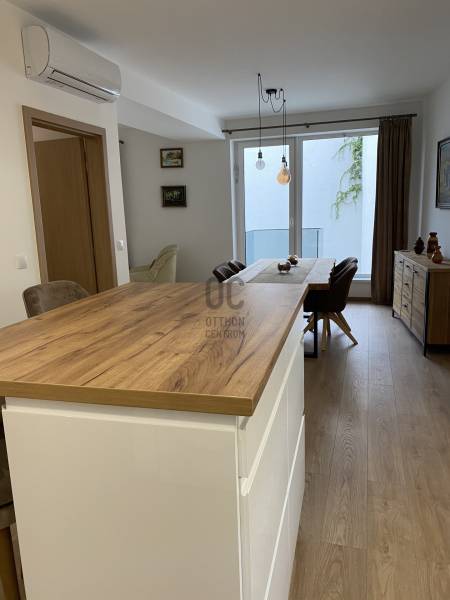 A szolnoki belváros legkedveltebb részén a Magyar úton elhelyezkedő társasházban, 100 m-re a Tisza-parti Sétánytól és a városközpontban koncentrálódott intézményektől, 1. emeleti luxus lakás kiadó. A magasfényű, igényesen kialakított konyhabútor, a nappaliban robusztus tölgyfa bútor, valamint a kényelmes bőr ülőgarnitúra teszi komfortossá a mindennapokat.A társasházi lakás jellemzői:- 2021-ben épült tégla építésű társasház első emeleti liftes lakása- rendkívül jó tájolású és elosztású, amerikai konyhás nappali és egy hálószoba elrendezéssel- a hatalmas ablakok miatt a lakás napfényben úszik- a két kis erkély nappaliból nyílik és a fűvel burkolt udvarra néz- az otthon kellemes hőérzetéről nyáron inverteres klíma gondoskodik- padlófűtés alacsony fűtésköltséggel- a konyha teljesen gépesített, a legmodernebb burkolattal és prémium minőségű konyhai gépekkel van ellátva (mikró, mosogatógép, mosógép, szárítógép, darálós kávéfőző stb.)- a konyhát nagy méretű konyhasziget teszi hangulatossá és praktikussá, ahol élmény a főzés- nagy méretű tölgy étkezőasztal és prémium minőségű székek a konyhát és nappalit összekötő étkező részben található- modern, esztétikusan kialakított fürdőkádas fürdőszoba, külön WC-vel isAz udvarban a lakáshoz egy liftes rendszerrel működtetett kocsi beálló is tartozik, amelynek havi bérleti díja 20e/hó.Rendezett lépcsőház, kellemes környezet, igényes lakóközösség.A lakásba kisállat nem hozható és a dohányzás a lakásban nem megengedett.Számlaképes!A lakás teljes bútorzattal kerül kiadásra, két havi kaucióval, és tárgy havi bérleti díj, költség megfizetésével bérelhető.Elsősorban egyedülállók, vagy fiatal gyermektelen párok jelentkezését várjuk.A bérleti idő minimum egy év.Ha felkeltettem érdeklődését, kérem hívjon, és nézzük meg együtt!