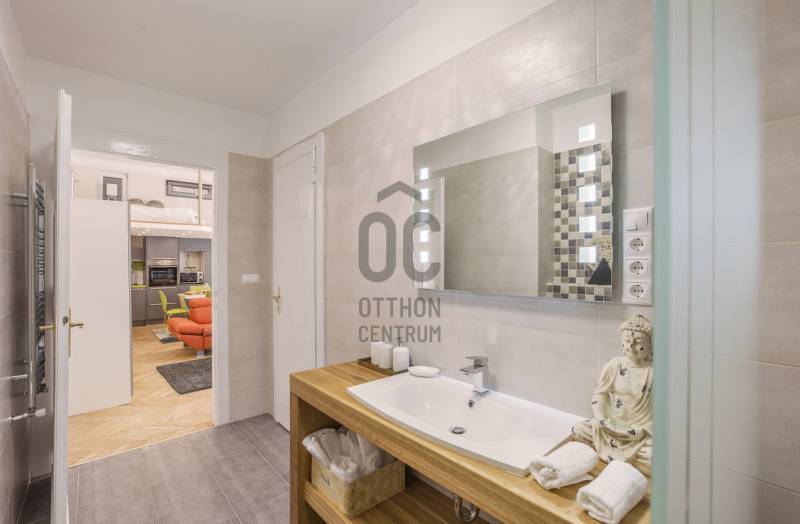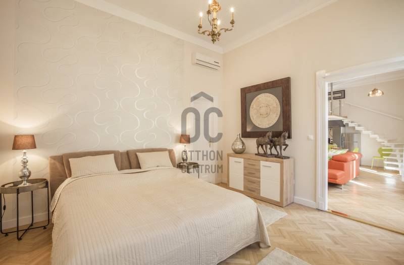 A Deák tér és az Astoria között, egy impozáns épületben található az ingatlan, mely három önálló lakásra lett kialakítva. Az összenyitása is megoldható, mert úgy lett kialakítva, ezért szét-vagy összeköltözőknek, irodának, rendelőnek, kiadásra tökéletes választás!Ingatlan:- 234 nm, 3,8 m belmagasságú, felújított, gáz-cirkó fűtésű, inverteres klímás 8 szobás, 3 fürdőszobás+WC-s, 2 önálló WC+kézmosós, teraszos lakás.- A szobák, részben utcai-részben pedig udvari nézetűek.- Az ingatlan egy akadálymentes, liftes társasház, II. emeletén helyezkedik el.Környezet:A legfelkapottabb része a fővárosnak, ahol sétatávolságra van a Zsinagóga, az Andrássy út, a Belváros, a Madách tér, az Astoria.
