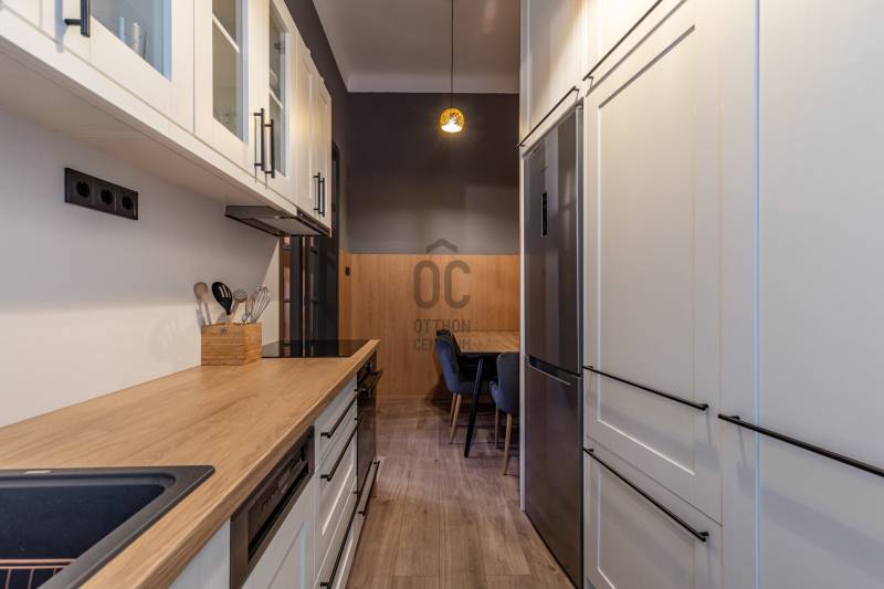 Csend, harmónia, melegség – néha ennyi is elég. Üdv itthon!RÖVID ÖSSZEFOGLALÓA II. kerület egyik legjobb adottságú részén, a Mecset utcában található ez a 63 m²-es, kétszobás, teljeskörűen saját részre tervezett és kivitelezett lakás, egy liftes, rendezett téglaépület harmadik emeletén.A 3,6 méteres belmagasság, a precíz asztalosmunkák, a modern gépészet és új hőszigetelt nyílászárók mind egy átgondolt koncepció részei, amelyben a funkcionalitás és az esztétika tökéletes egyensúlyban van.ELHELYEZKEDÉS– városi nyugalom a Rózsadomb lábánálA Mecset utca a II. kerület egyik legkedveltebb, mégis csendes szeglete.Néhány perc sétára elérhető a Margit körút, a Széll Kálmán tér és a Várnegyed, így a városi élet minden kényelme karnyújtásnyira van.A környék biztonságos, jól ellátott és zöld, a közlekedés kiváló: a 4-6-os villamos, a M2-es metró, valamint több buszjárat is könnyen elérhető.Ideális választás mindazoknak, akik a városi élet központjában, mégis csendes, rendezett utcában keresnek harmonikus otthont.AZ ÉPÜLET – klasszikus karakter, gondos karbantartásA századforduló idején épült, stabil szerkezetű téglaépület a korszakra jellemző díszített homlokzattal és vasrácsos ganggal rendelkezik.A lakás belső udvarra néz, így a forgalom zaja teljesen kiszűrődik – a csend és nyugalom garantált.A ház jó műszaki állapotú és folyamatosan karbantartott.A gázvezetékeket 2008–2009-ben, az elektromos hálózatot 2017-ben újították fel, a függőfolyosók és a kémények már megújultak.A tető egyik fele felújított, a másik oldal 2026-ban kerül sorra.A közös költség 300 Ft/m², amely tartalmazza a közös használatú részek fenntartását, a közös képviselet díját és a felújítási alapot.A LAKÁS – arányos terek, finom részletekA teljesen felújított lakásban minden elem egy tudatos térkompozíció része.A nappali és a háló közötti átmenet finoman oldott, a beépített bútorok egységes ritmust adnak a térnek.A fa felületek melege, a visszafogott szürke-föld tónusok és a rejtett világítás együtt teremtenek kiegyensúlyozott, otthonos atmoszférát.Az ablakos konyha egyedi gyártású bútorral és modern, teljesen gépesített berendezéssel készült.A fürdőszoba praktikus tárolómegoldásokkal, mosógéphellyel és természetes anyaghasználattal rendelkezik.MŰSZAKI TARTALOM- Új, korszerű kazán- Teljes villamos- és gépészeti felújítás- Műanyag, hőszigetelt nyílászárók- Rejtett LED-világítás- Egyedi, beépített bútorzatNem csupán felújított, hanem újratervezett otthon.Lépj kapcsolatba velünk, és nézd meg, hogyan válhat ez a tér a mindennapjaid részévé.----------------------------------------------Díjmentes, bankfüggetlen hiteltanácsadással támogatjuk vevő ügyfeleinket a számukra legelőnyösebb finanszírozási döntések meghozatalában. Opcionálisan igénybe vehető kiegészítő szolgáltatásainkkal – mint ügyvédi közreműködés, energetikai tanúsítvány vagy villamos biztonsági felülvizsgálat – teljes körű szakmai támogatást nyújtunk az adásvétel folyamatának minden egyes lépésénél.----------------------------------------------A hirdetésben szereplő információk tájékoztató jellegűek. A tévedés és az árváltoztatás jogát fenntartjuk. Az esetleges elírásokért és technikai hibákért felelősséget nem vállalunk.