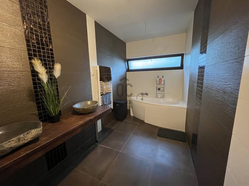 Eladásra kínálok a közkedvelt Nagybánya lakóparkban egy nettó 141 m²-es, önálló családi házat, melyhez 60 m²-es filagória, valamint garázs is tartozik. A tágas, jól átgondolt elrendezés és a kiemelkedő műszaki tartalom ideális választás lehet többgyerekes családok számára is.Elrendezés:- 4 különálló hálószoba - Szülői hálószobából nyíló privát fürdő- 33 m²-es nappali–étkező- Külön fürdőszoba és WC- 60 m²-es filagória – kiváló kinti étkezőként, pihenőként- 20 m²-es garázsTelek:- 720 m²-es, gondozott, tágas kertMűszaki jellemzők:- Cserép tetőhéjazat- 30 cm-es tégla falazat- 1 0 cm grafitos homlokzati hőszigetelés- Napelemrendszer (3Kw)- 3 rétegű, hőszigetelt műanyag nyílászárók dióbarna színben, redőnnyel és szúnyoghálóval- Kondenzációs gázkazán- Padlófűtés minden helyiségben- Klíma- Modern, energiatakarékos kialakítás- A vételár mellett a lakás bútorzata is megvásárolandó, melynek értéke további 5 millió forint.Ez az ingatlan különleges lehetőség azoknak, akik egy modern, kiválóan szigetelt, energiahatékony, élhető és nagy kerttel rendelkező otthont keresnek egy rendezett, családbarát lakóparkban. ✅ Ügyfeleinket teljes körűen segítjük a vásárlás és eladás teljes folyamatában megbízható hiteltanácsadói és ügyvédi háttérrel.Amennyiben felkeltette az érdeklődését, hívjon bizalommal – akár hétvégén is!