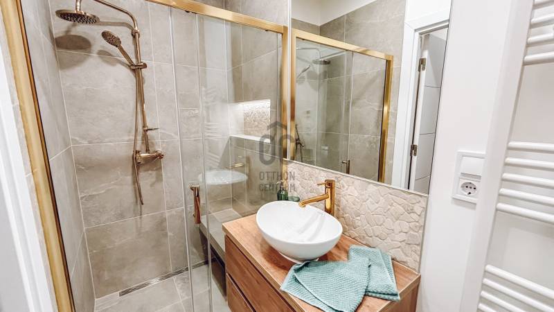 Eladó a Belső 6. kerületben, az Andrássy útnál, de mégis csendes utcában -- egy nettó 62 nm-es , 3. emeleti (lift van), nappali + 2 hálószobás, 2 fürdőszobás (duplakomfortos), hűtő-fűtő klímákkal felszerelt, felújított lakás!LAKÁS- A prémium minőségű felújítás mindent érintett! (víz- és elektromos vezetékek, burkolatok, nyílászárók, fürdőszobák, konyha stb.)- Berendezéssel, VADONATÚJ bútorokkal, gépesítve kerül értékesítésre- Élhető elosztás – 2 kényelmes hálószoba, valamint egy tágas, amerikai konyhás nappali- 2 fürdőszoba és egy külön vendégmosdó- A kellemes hőérzetről új kondenzációs kazán, valamint hűtő-fűtő klímák gondoskodnak- A rezsiköltségek egyéni fogyasztás alapján fizetendők, minden lakás külön mérőórával rendelkezik- Per-, teher- és igénymentes, saját helyrajzi számmal rendelkezik, 1/1-es tulajdonHÁZ- A lakóközösség kifejezetten barátságos és összetartó- A ház külső és belső homlokzata egyaránt jó állapotú, rendszeresen karbantartott- A tiszta, rendezett lépcsőházból kényelmesen megközelíthető minden szint a liftnek köszönhetőenKÖRNYÉK, TÖMEGKÖZLEKEDÉS- Budapest lüktető belvárosában, mégis egy nyugodt, csendes utcában helyezkedik el, ahol zavartalanul lehet pihenni- A környéken elegáns üzletek, valamint a világ egyik legszebb Operaháza várja- Elég néhány lépést tenni, és máris az Andrássy út elegáns világában találod magad, Budapest ikonikus főutcáján- Pár perc séta csupán a Deák Ferenc tér vagy a Bajcsy-Zsilinszky és az Arany János utcai metrómegálló, így a város teljes közlekedési hálózata könnyedén elérhető- Lélegzetelállító építészeti részletek és történelmi épületek minden irányban- Rövid séta a Duna-partig, ahol bármikor feltöltődhetsz- Számtalan gasztronómiai élményEz az ingatlan tökéletes választás azoknak, akik a luxust, a minőséget és a nyugodt otthoni életteret keresik Budapest szívében egy karnyújtásnyira a kulturális és gasztronómiai élményektől.Amennyiben elnyerte tetszését és szeretné megtekinteni az ingatlant, hívjon bizalommal!