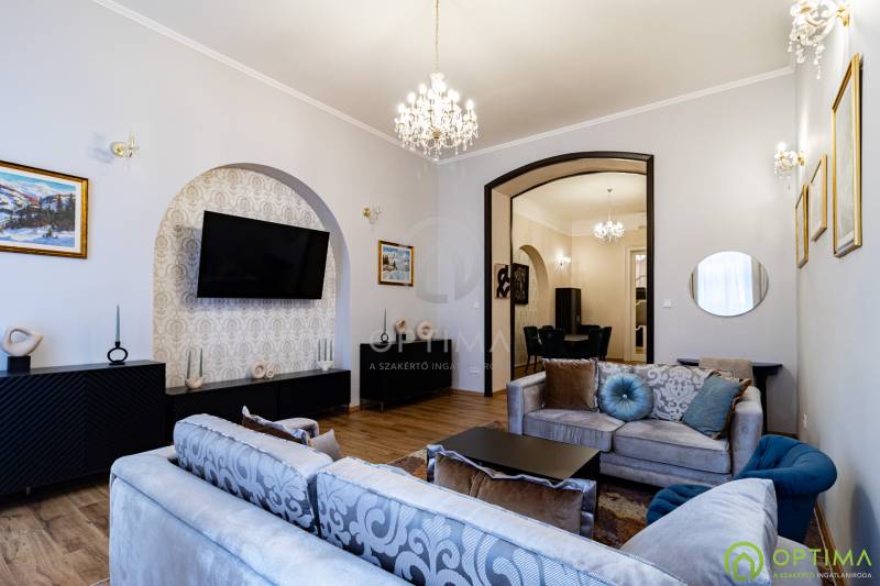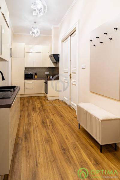 TELJESKÖRŰEN FELÚJÍTOTT, 2 SZOBÁS LAKÁS A PALOTANEGYEDBEN Budapest VIII. kerületének legkeresettebb városrészében, a Palotanegyedben, a Szentkirályi utcában kínálom megvételre ezt a 95 m2 alapterületű, I. emeleti, 2 szobás téglalakást. A ház külső és belső homlokzata is kiváló állapotban van. A lakás egy külön zárt folyosóról közelíthető meg, így csak 1 közvetlen szomszéd van. A lakás TELJES KÖRŰ felújításon esett át ebben az évben: - cserére kerültek a vezetékek (villany-, gáz- és vízvezetékek egyaránt), - beépítésre kerültek új hang- és hőszigetelő műanyag ablakok, - cserére kerületek a burkolatok a konyhában és a fürdőben egyaránt, - beépítésre került egy gépesített konyhabútor,- kialakításra került a cirkó fűtés, - beépítésre került légkondicionáló. A közös költség összege havonta 29.000 Ft, amely tartalmazza a szokásos tételeket, mint a LIFT használatot, a szemét elszállítását, a lépcsőház tisztántartását. A közüzemi fogyasztások mind egyedi mérőórák alapján kerülnek elszámolásra. A KÉPEKEN LÁTHATÓ BÚTOROK ÉS BERENDEZÉSI TÁRGYAK A VÉTELÁR RÉSZÉT KÉPEZIK. Az ingatlan BELVÁROSI elhelyezkedésének köszönhetően BEFEKTETÉSI céllal való vásárlása is kitűnő választás lehet. A lakás megtekintése miatt VÁROM HÍVÁSÁT akár hétvégén vagy az esti órákban egyaránt!