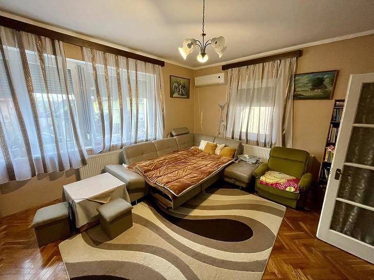 Eladásra kínálunk Dunakeszi alsótabán részén, 2 szintes, szigetelt, 160nm-es jó állapotú, jól felszerelt családiházat. Az alsó szinten (fél szuterén) kialakítható, egy teljes lakrész, nappali, 2 hálószoba és 1 fürdőszoba. Ez a szint, műszakilag jó állapotú, villany vezetékezés megtörtént, a falak glettelve vanna, festés, szaniterek és a burkolatok hiányoznak.A fenti szinten, 2 hálószoba, nappali, fürdőszoba, és étkezővel egybenyitott konyha melyen keresztül egy 12nm-es terasz közelíthető meg. Ezen a szinten 2022-ben teljeskörű felújítást végeztek.A fűtésről kombi cirkó, vagy vegyes tüzelésű kazán gondoskodik, de hűtő-fűtő klíma is felszerelésre került. A konyhabútor az ár részét képezi.A kert rendezett, igényesen kialakított, melynek végében 1 saját konyhakert is található, fedett gépkocsi beálló került kialakításra, melyet elektromos kertkapun keresztül tudunk megközelíteni. Kérdésével, illetve megtekintési szándékával kérem keresse irodánkat.Az ingatlan hitelre is megvásárolható. Bankfüggetlen tanácsadóink, az ország összes pénzintézete közül gyorsan és gördülékenyen találja meg az Önnek legmegfelelőbb konstrukciót, egyedi kedvezményekkel. A hitel közvetítés díjmentes.
