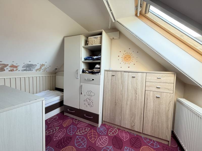 Pécel központjához közel, a Pesti úton eladó egy felújított, saját kerttel rendelkező ikerházfél.A bruttó 56 m²-es (nettó 52,75 m²) házhoz egy 25,6 m²-es, 70%-ban fedett terasz, egy 17,9 m²-es (nettó 7 m² 190 cm feletti belmagasággal) tetőtéri egy légterű helyiség, valamint 186 m² kizárólagos használatú telekrész tartozik. A kert teljes mértékben leválasztható, a saját területen két autó parkolása megoldott. A telek végében a Rákos-patak található, mely természetes, nyugodt környezetet biztosít.A vályogfalazatú ház 2017-ben teljes felújításon esett át (15 cm szigetelés, műanyag nyílászárók, új burkolatok), 2022-ben pedig további korszerűsítések történtek: a nappali és a konyha egybenyitásra került, új padlóburkolat és dísztégla fal került a nappaliba, a nyílászárók redőnyt és szúnyoghálót kaptak, a konyhába pedig új, minőségi konyhabútor és teljes Bosch–Electrolux gépészet került beépítésre.A konyha beépített gépei:– Bosch indukciós főzőlap (boost, időzítő, kifutásgátló)– Bosch mosogatógép (silent, eco, auto, 14 teríték)– Electrolux sütő (pirolitikus tisztítás, gőz funkció, 300°C)– Electrolux erős elszívóHelyiségek:– Nappali: 16,7 m²– Konyha: 14 m²– Fürdő: 2,33 m²– Előszoba: 5,3 m²– Tetőtér: 17,9 m²– Terasz: 25 m²– Saját kert: 140 m²Műszaki tartalom:– Fűtés és HMV: kondenzációs gázkazán– Radiátoros hőleadás– Hűtő–fűtő klíma– Réz villamos hálózat (32A)– Elektromos kapu– Riasztórendszer– Tároló / spejz a lépcső alatt– Kerti tároló és szigetelt medencealapA telek földmérő által készített vázrajz szerinti, ügyvédi használati megosztással rendelkezik. A lakók kulturáltak, barátságosak, egymás életét nem zavarják.Rezsiköltség: kb. 30.000 Ft/hó.Részletes környékleírás – minden egy karnyújtásraA ház Pécel központjához közel, a Pesti úton helyezkedik el.– 169E buszmegálló közvetlenül a ház előtt– Kisbolt a házzal szemben– Penny, Rossmann és a városközpont 2 perc autóval, 10 perc gyalog– Vasútállomás 10 perc sétával elérhető (Budapest 15–20 perc vonattal)– M0 autóút mindössze 2 percre– A telek végén gyalog le lehet menni a Rákos-patakhoz, kellemes természetközeli hangulatot biztosítvaINGYENES hitel tanácsadás,Otthon Start, CSOK Plusz ügyintézés!BANKFÜGGETLEN hitelcentrumunk az összes elérhető bank és hitelintézet ajánlatát versenyezteti az Ön kedvéért, ráadásul DÍJMENTESEN.- Egyedi, bankfiókban nem elérhető kamat- és díjkedvezmények- Hitelképesség vizsgálat- Idő, energia és pénz megtakarítás- Teljes hivatali ügyintézésAmennyiben hirdetésem felkeltette az érdeklődését vagy egyéb információra van szüksége hívjon bizalommal!