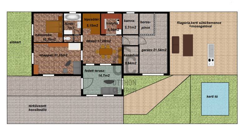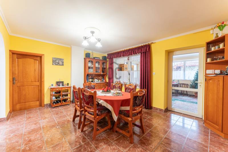 Móron, egy 649 m²-es, teljesen közművesített telken kínáljuk megvételre ezt a földszint + tetőtér kialakítású, 2013-ban szinte teljesen újjáépített, hangulatos családi házat.Kiváló választás azoknak, akik egy rendezett, nyugodt, zsákutcás környezetben szeretnének élni – bevásárlási lehetőségektől mindössze 500 méterre.Földszint: • hatalmas, napfényes nappali • egy hálószoba • konyha és étkező • tágas, fedett terasz – családi és baráti összejövetelek tökéletes helyszíne • fürdőszoba és külön WCTetőtér: • 2 lakószoba • egy nagy, világos tér, amely új tulajdonosa fantáziájára vár: lehet plusz hálószoba, játszószoba vagy dolgozószoba • WC-kézmosó, valamint zuhanyzó kialakításának lehetőségeMűszaki tartalom: • masszív beton alap, Porotherm 38-as tégla falazat, betonfödém • fa tetőszerkezet zsindelyfedéssel, üveggyapot szigeteléssel • Ariston gázkazán + padlófűtés • hangulatos, épített cserépkályha a nappaliban • rendkívül kedvező gázfogyasztás: kb. 1,5 m³/nap • műanyag nyílászárók, redőnnyel és rovarhálóval • klímaberendezés • rendszeres rovarvédelmi kezelés minden tavasszal • kamerarendszer Melléképületek, extrák: • 21,5 m²-es garázs borospincével (kb. 4 m²) • hangulatos kerti szaletli kemencével és hideg–meleg vizes mosogatóval • rendezett kert 80 tőke csemegeszőlővel • fóliasátor, medencének kialakított terület és kis kerti tó • 22 m mély fúrt kút • elektromos úszókapu, térkövezett udvarEgyéb információk: • bútorzat igény szerint megbeszélés tárgya • csereingatlan beszámítása lehetséges, értékegyeztetésselHa egy gondosan karbantartott, kényelmes és szerethető otthonra vágyik Móron, akkor ez a ház tökéletes választás lehet!Érdemes személyesen is megtekinteni – garantáltan beleszeret!Ez az ingatlan a \"Felező csomag\" megbízási portfólióhoz tartozik. Részletek az Otthon Centrum weboldalán.