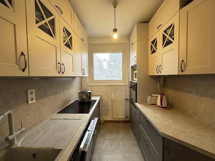 Megyeren, a Szilas-patak partján, átmenő forgalomtól mentes, csendes zsákutcában, eladásra kínálunk egy 1980-es években épült, beköltözhető állapotú, 2 szintes, nettó 94 nm-es, 2+2 félszobás elosztású sorházat garázzsal. Az ingatlan per, teher és igénymentes. Átadási ideje: 90-120 nap! Külön helyrajzi számmal rendelkezik, közös költség nincs!Az ingatlan tetőszerkezetének felújítása megtörtént, illetve 3 évvel ezelőtt a kéményt is kibéleltették. A földszinten műanyag keretes, thermo üveges nyílászárókat, az emeleteken pedig fa keretes, thermo ablakokat és fa típusú velux ablakokat építettek be. A földszinti szobában laminált padlót helyeztek le, a tetőtéri szobák padlószőnyegesek, a többi helyiség linóleummal és járólappal burkolt. A fűtőtestek korszerűsítés is megtörtént, újabb lapradiátorokat szereltek fel. A fűtésről egy 3 éves kombi cirkókazán gondoskodik, a jelenlegi átalánydíj 8.000.- Ft. A nagyobb komfortérzet kialakításának érdekében a nappaliba egy hűtő-fűtő inverteres légkondicionáló is helyet kapott. A földszinten kialakításra került egy nagy nappali, mely könnyedén két szobára osztható, konyha, étkező, kamra, gardrób, wc, egy kb 10 nm-es, beépített terasz és egy kb. 20 nm-es kert. Az emeleten 1+2 félszobát, kádas fürdőszobát és gardróbot találunk. A tetőtérben pedig lehetőség nyílik egy újabb, bruttó 15 nm-es, nettó 10 nm-es szoba kialakítására. Az épület előkertes, illetve, utcafrontól nyíló, 15 nm-es garázs is tartozik hozzá. A közelben megtalálható a 30-as, 196-os, 122-es, 230-as busz megállója. Újpest-központ busszal 15 perc alatt elérhető. A belváros tömegközlekedéssel és autóval egyaránt rövid időn belül megközelíthető.A hirdetésben szereplő adatok tájékoztató jellegűek! Egyes ingatlanjaink esetében csere és ingatlanbeszámítás is lehetséges. Továbbá ügyfeleink részére keresünk eladó ingatlant, tulajdonrészt, vagy haszonélvezeti joggal terhelt ingatlant Budapesten és az agglomerációban. A részletekről kérjük érdeklődjön telefonon.Bankfüggetlen hiteltanácsadóink, az ország összes pénzintézete közül gyorsan és gördülékenyen találja meg az Önnek legmegfelelőbb konstrukciót, egyedi, személyre szabott kedvezményekkel.A KÖZVETÍTÉS VEVŐINK RÉSZÉRE DÍJMENTES!