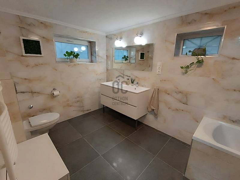 Ezt a gondosan karbantartott, felújított ingatlant látnod kell! Ha csendes, természetközeli környezetre vágysz, mégis Budapest közelében maradnál, akkor ez az ingatlan remek választás lehet.A telek és a külső tér:-769 m² gondozott kert rengeteg dísznövénnyel-Automata öntözőrendszer-15 m²-es, vörösfenyőből készült kerti kiülő-Elektromos kapu, fedett kocsibeálló-Tüzifatároló, fészer-Utcán ingyenes parkolásKözművek:-Villany: 3×20A-Víz: bekötve-Szennyvíz: emésztő-Csatorna az utca egy részén már rendelkezésre áll, bővítése folyamatbanAz épület és a műszaki állapot:-Homlokzat és padlástér szigetelt-Korszerű elektromos hőtárolós kályhák (éjszakai áramról)-Hűtő-fűtő klíma-Fürdőben padlófűtés + törölközőszárító-Konyhában és étkezőben elektromos panel + modern fatüzelésű hőtárolós kályha-2021-ben cserélt, 3 rétegű műanyag nyílászárók-Teljes gépészeti felújítás: új villanybojler, vezetékek, fűtésrendszer, klíma, beépített konyhai gépekKülönlegesség:Az emeleten található egy fűthető, hangulatos télikert, ahonnan gyönyörű panoráma tárul elénk!Helyiségek – 90 m² nettó lakótérFöldszint:-Fedett terasz (9 m²)-Konyha + étkező (18 m²)-Spájz (3,65 m²)-Folyosó + lépcső (8,35 m²)-Mosókonyha (3 m²)-Fürdő + WC (9,4 m²)Emelet:-Hálószoba (16,8 m²)-Nappali (12,8 m²)-Lépcsőforduló (5,5 m²)-Télikert (11,3 m²)Hívjon bizalommal a részletekért!