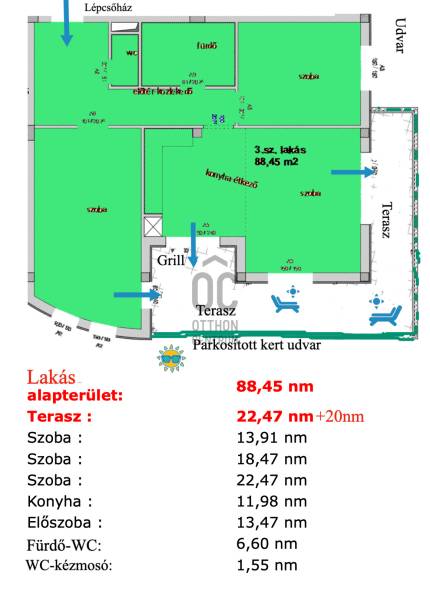 Sportolók, családosok, zöld környezetet kedvelők! Taraliget lakóparkban szuper lehetőség!Ritkán elérhető, kivételes adottságú eladó ingatlan, amelyből a lakóparkon belül is csak néhány létezik!Ez a 88 m2 otthon a X.kerület Népligetnél a TARALIGET lakóparkban vár rád – 43 m²-es privát, kertkapcsolattal.A megérkezés pillanataMár a kapuban elindul a történet: a portaszolgálat figyelmes biztonsága, a rendszámfelismerős beléptetés kényelme és a gondosan ápolt zöldterületek olyan környezetet teremtenek, amely egyértelmű üzenetet küld:itt számít a minőség, itt értéke van a békének.Az otthonA 2022-es teljeskörű felújításnak köszönhetően a 88 m2 lakás friss, modern és letisztult.A déli fekvésű nappali szinte egész nap fényben úszik, a 2 külön hálószoba pedig intim, nyugodt privát életteret biztosít. A duplakomfortos kialakítás és az átgondolt elrendezés a mindennapok kényelmét helyezi középpontba.A tágas étkezős konyha a funkcionalitás és az elegancia harmonikus találkozása. A beépített bútor mögött prémium készülékek dolgoznak: modern sütő, hatékony elszívó, elegáns kerámialapos főzőlap — a mosó- és mosogatógép is könnyedén illeszkedik.Ez a tér nem egyszerűen főzésre szolgál: ez egy olyan hely, ahol jó időt tölteni.Műszaki adatokREHAU hőszigetelt nyílászárók redőnnyel és szúnyoghálóval, MACO vasalattal, belső könyöklővel és külső párkánnyal, szobánként résszellőzővelHázközponti fűtés egyedi mérővel, lapradiátorok termosztáttalKülön szellőzőrendszer a belső helyiségekbenSplit klíma előkészítésRiasztó és kamerarendszerTartós, fagyálló kültéri burkolatok32A áramerősségDuplakomfort ( WC a fürdőszobában és külön helyiségben is). A külön bejáratú mellékhelyiségben + kutyatusoló is helyet kapott.Helyiségek:nappali+2 szobakonyha-étkezőelőszobafürdőszoba-WCWC-kézmosó + (kutya tusoló)L alakú hatalmas terasz ( 2,5 + 40m2)A gépesített és bútorozott konyha (konyhabútor, tűzhely, szagelszívó, mosogatógép) valamint az egyik bútorozott hálószoba ( polcok, szekrények, franciaágy) a vételár részét képezi, marad !A lakás igazi esszenciája a hatalmas, növényekkel körbevett 43 m3 privát terasz.A hely, ahol a reggelek lassabban indulnak, a hétvégék tovább tartanak, az esték pedig meghittebbek.Reggeli kávé, esti bor, baráti beszélgetések vagy egy grillezés – mind itt válik valódi élménnyé.A terasz vízkiállása tovább növeli a használhatóságot, a teljes intimitás pedig ritka kincs.Teraszok kijáratai:1,. a szobából és konyhából2., nappalibólNövényekkel körbevett, valamint gondolva házi kedvenceink biztonságára is, védőhálóval ellátott.A 33.000 m²-es Taraliget parkosított területe pihenők, játszóterek, szökőkutak és egy téli szánkódomb otthona.A természet és a városi élet tökéletes egyensúlyban él itt egymás mellett.Közel a Népliget, sportpályák, futó- és bringaútvonalak – tökéletes választás sportolóknak, családosoknak, kutyásoknak.A lakópark területére belépési lehetőség 2 kapun keresztül lehetséges, az egyik portaszolgálatos a főbejáratnál. Ez a lakópark nyugodtabb és csendes oldala, melyhez az eladó lakás is közel esik.Még több kényelemFűtött lejáró a mélygarázsbaA kényelmet fokozza: a mélygarázsból lifttel érkezhetünk a lépcsőházba, otthonunk bejáratához.Megvásárolható: parkolóhely (15 m²) és tároló (7 m²) – külön helyrajzi számon, 10 M HUF.Kiváló tömegközlekedési lehetőségek, a város bármely pontja rövid időn belül elérhető.Mindennapi vásárlási lehetőségek a közelben. Az ideális közlekedési lehetőségek gyors elérést biztosítanak az Aréna Mall vagy az Árkád Örs Vezér terére is.Otthon, ahol minden nap úgy érzed: hazaértél.Ahol a nyugalom luxusa és a modern kényelem természetes része a mindennapoknak.Ahol minden részlet – a fény, a tér, a terasz, a környezet – téged szolgál.Vételár megfizetést követően, azonnal költözhető!Megtekintés előtt időpont egyeztetés szükséges.