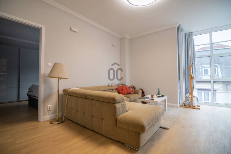 Eladó egy 93 m²-es, 4 szobás, kiváló állapotú, tágas társasházi lakás Lágymányos egyik legjobb részén. A lakás a teljes 5-ik emeleten egyedül helyezkedik el, így rendkívüli privát, csendes, zárt érzetet biztosít – valódi ritkaság a környéken.A ház liftes, a lépcsőház és a közös területek rendezettek, karbantartottak. A fűtés házközponti egyedi méréssel, a lakás délnyugati tájolású, utcai nézettel.Parkolás: a ház alatt található magánteremgarázsban időszakosan bérelhető vagy vásárolható beálló (kb. 30.000 Ft/hó-tól). A környéken ez nagy előny.Helyiségek: tágas nappali (24 m²), három különnyíló szoba, nagy étkezős konyha (16 m²), fürdő + WC, külön WC, gardrób, közlekedők.Nappalija szuper világos, mivel az erkély rész teljesne be lett építve és ott fal helyett végig üveg van. Állapot: lakás – kiváló, homlokzat – jó, lépcsőház – kiváló.Lokáció: Bartók Béla út – galériák, kávézók, BME/ELTE, Móricz és Gellért tér pár perc sétára. Közlekedés kiemelkedő: 4-6, 19, 49-es villamos, gyorsbuszok.Birtokbaadás: max. 4 hónap, de akár hamarabb is lehetséges.Az ingatlan a Hűség értékesítési csomag keretében érhető el, amelynek részleteiről szóban tudunk egyeztetni. Keressen bizalommal, ha megtekintené.Ez az ingatlan a \"Hűség csomag\" megbízási portfólióhoz tartozik. Részletek az Otthon Centrum weboldalán.