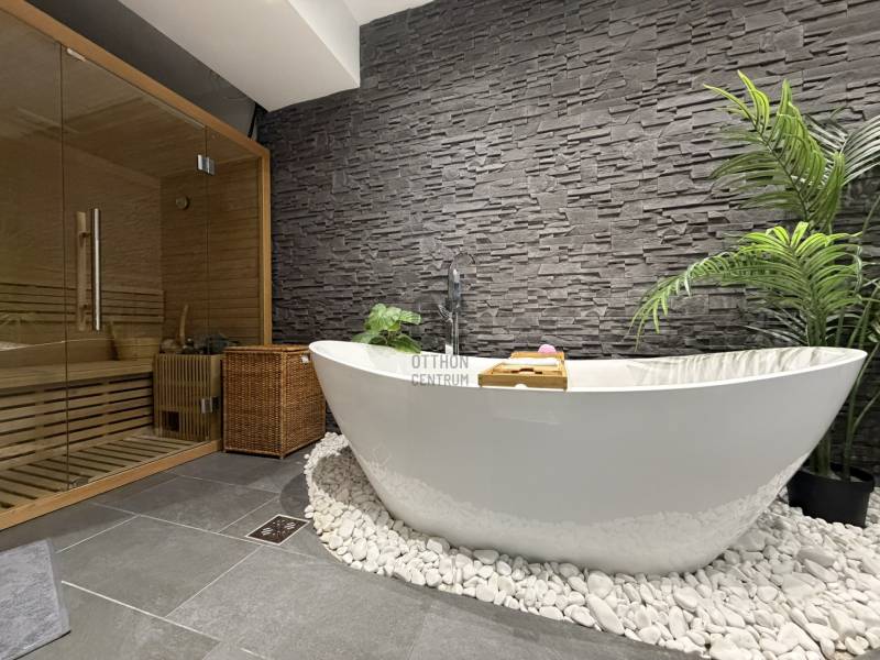 Budán, Testvérhegy egyik forgalomtól elzárt, hangulatos zsákutcájában kínálunk bérbe egy igényesen felújított, külön bejáratú házrészt. Az ingatlanhoz egy körülbelül 600 m²-es, saját használatú kertrész tartozik, amelyet egy elegáns, 100 m²-es privát terasz egészít ki – így a szabadtéri pihenés, a reggeli kávé vagy az esti borozás is tökéletes helyszínt kap.A házrész nettó 101 m²-es, modern, letisztult belső terekkel rendelkezik. A tágas amerikai konyhás nappali a mindennapok központja, amely harmonikusan kapcsolódik a kert látványához. A hálószoba kényelmes és csendes, mellette pedig egy dolgozósarok biztosít ideális helyet az otthoni munkavégzéshez. A fürdőszoba különleges élményt nyújt a káddal, a zuhanyzóval és a saját szaunával, míg a gardróbszoba – igény esetén – akár második hálószobává is alakítható. A lakást egy előszoba és egy különálló WC teszi teljessé. A teljesen felújított belső tér modern, igényes és barátságos hangulatot áraszt.Az elhelyezkedés kiemelkedő: Testvérhegy zöldövezeti nyugalma a főváros egyik legkeresettebb atmoszféráját biztosítja, miközben a közeli buszjáratokkal Óbuda, Békásmegyer és a HÉV gyorsan és kényelmesen elérhető. A környék csendes, biztonságos, rendezett, tökéletes azoknak, akik szeretnének kiszakadni a város zajából, de nem mondanának le a könnyű megközelíthetőségről.A bérleti díjon felül a rezsiköltség mindössze havi 40.000 forint, amely minden közműdíjat magában foglal, így a havi kiadások teljes mértékben kiszámíthatóak és átláthatóak.Ha egy modern, természetközeli, saját kertkapcsolattal rendelkező, exkluzív házrészt keres Testvérhegyen, akkor ez az ingatlan ritka és kivételes lehetőség. Szívesen küldök további részleteket vagy egyeztetek időpontot a személyes megtekintésre.