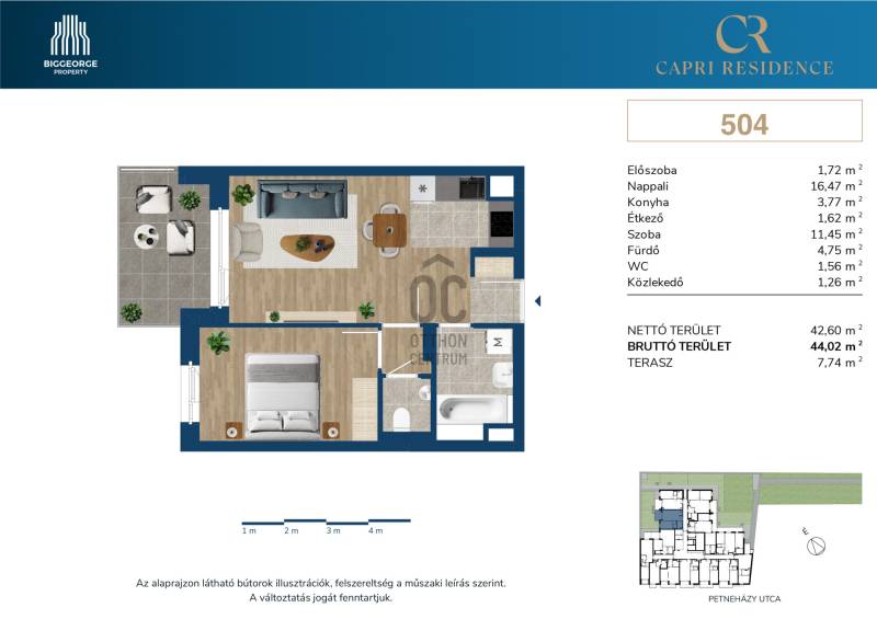 Projekt bemutatásaA Capri Residence a XIII. kerület szívében, a dinamikusan fejlődő Váci út közvetlen közelében valósul meg, amely Budapest egyik legkeresettebb lakáspiaci területe. Az elegáns, modern megjelenésű épületet, a homlokzatán végigfutó üvegkorlátos teraszok díszítik majd, a felsőbb szinteken pedig nagyteraszos lakások is elérhetők, amelyek egy része panorámás kilátást biztosít.Az épületben összesen 112 lakás kap helyet, amelyek elrendezése a stúdiótól a nappali plusz három hálószobásig terjednek. Az épületben emellett egy közösségi tér, 122 parkolóhely, 62 tároló, valamint opcionálisan elektromos autótöltővel szerelt teremgarázs beállók is megépítésre kerülnek.A műszaki felszereltség a legmagasabb szakmai trendeket követi: a Capri Residence lakóinak kényelmét mennyezeti hűtés-fűtés, háromrétegű üvegezéssel ellátott műanyag nyílászárók, smart-home előkészítés, valamint belsőépítész által összeállított belső anyagválaszték biztosítja majd. A földszinti lakásokhoz privát kertkapcsolat tartozik, emellett a társasház közös díszkerttel is rendelkezik.