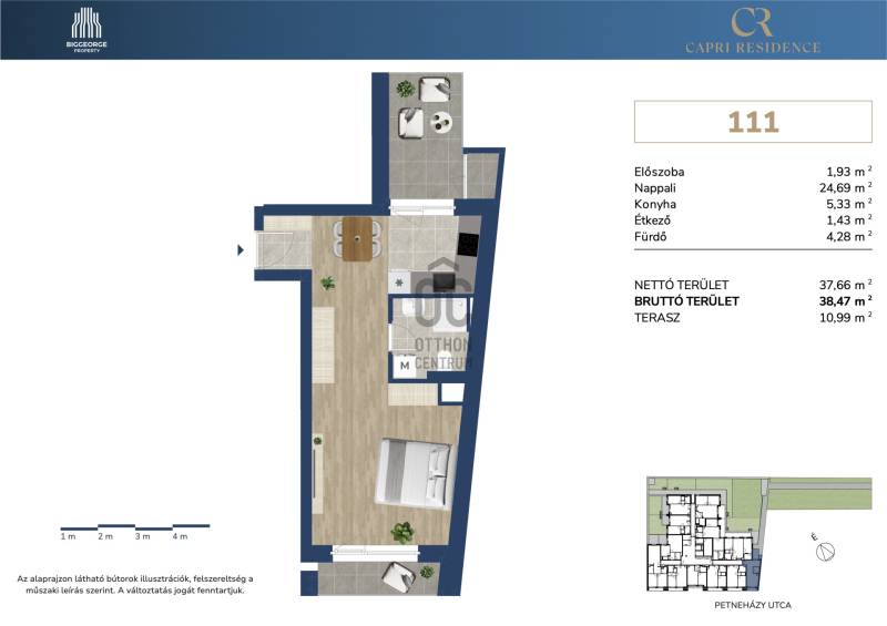 Projekt bemutatásaA Capri Residence a XIII. kerület szívében, a dinamikusan fejlődő Váci út közvetlen közelében valósul meg, amely Budapest egyik legkeresettebb lakáspiaci területe. Az elegáns, modern megjelenésű épületet, a homlokzatán végigfutó üvegkorlátos teraszok díszítik majd, a felsőbb szinteken pedig nagyteraszos lakások is elérhetők, amelyek egy része panorámás kilátást biztosít.Az épületben összesen 112 lakás kap helyet, amelyek elrendezése a stúdiótól a nappali plusz három hálószobásig terjednek. Az épületben emellett egy közösségi tér, 122 parkolóhely, 62 tároló, valamint opcionálisan elektromos autótöltővel szerelt teremgarázs beállók is megépítésre kerülnek.A műszaki felszereltség a legmagasabb szakmai trendeket követi: a Capri Residence lakóinak kényelmét mennyezeti hűtés-fűtés, háromrétegű üvegezéssel ellátott műanyag nyílászárók, smart-home előkészítés, valamint belsőépítész által összeállított belső anyagválaszték biztosítja majd. A földszinti lakásokhoz privát kertkapcsolat tartozik, emellett a társasház közös díszkerttel is rendelkezik.