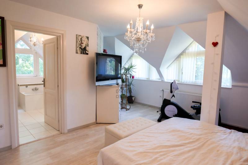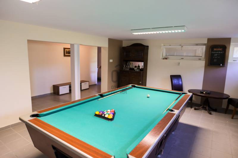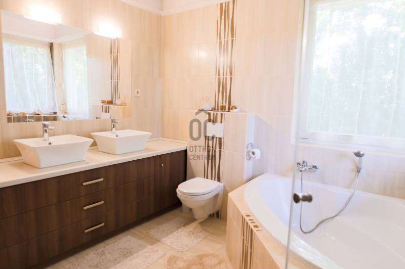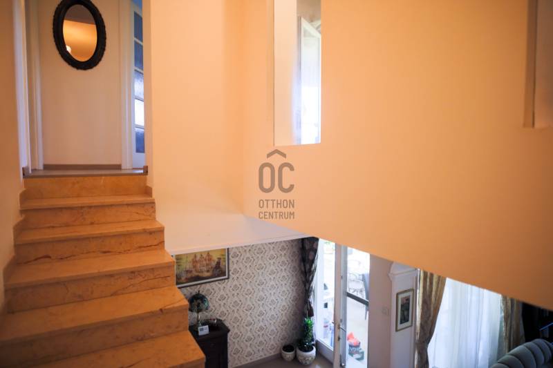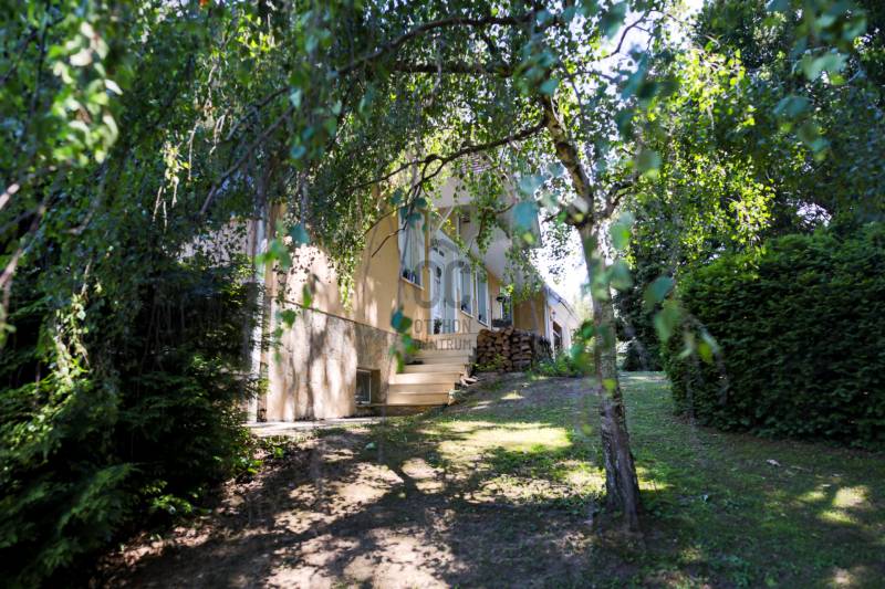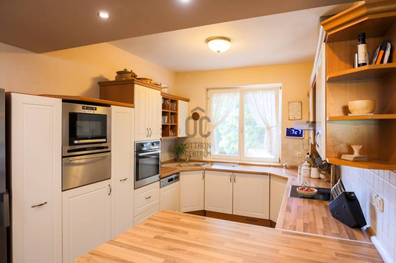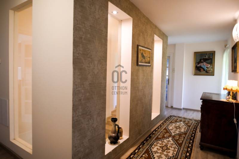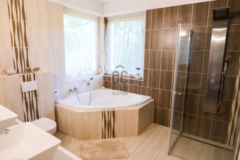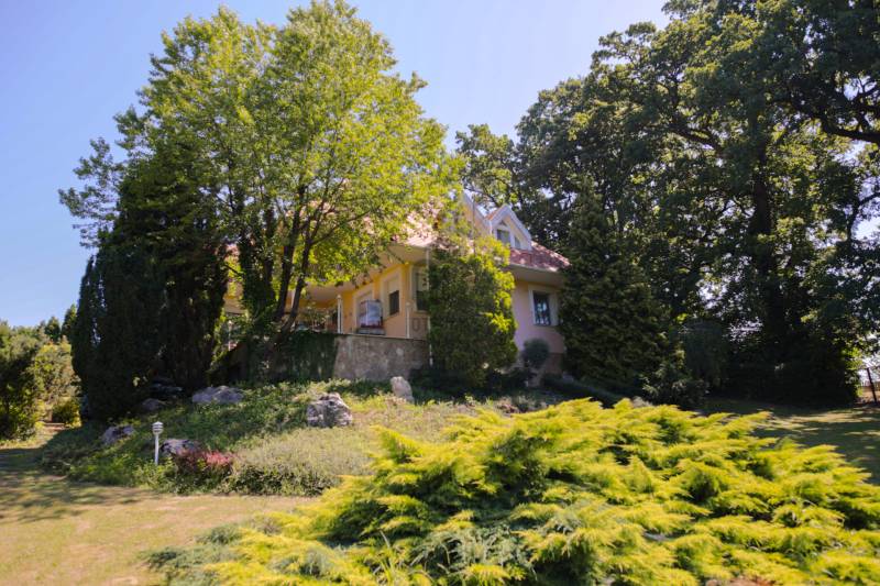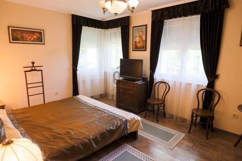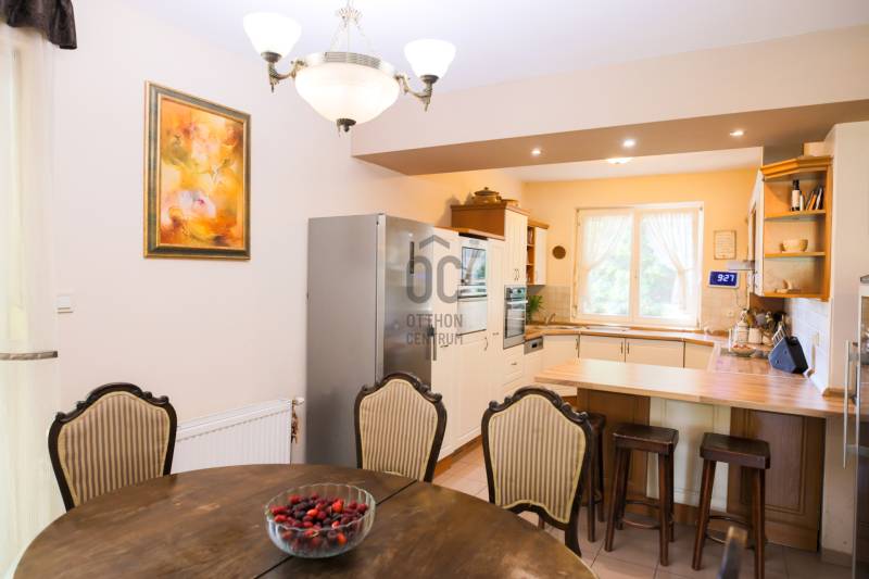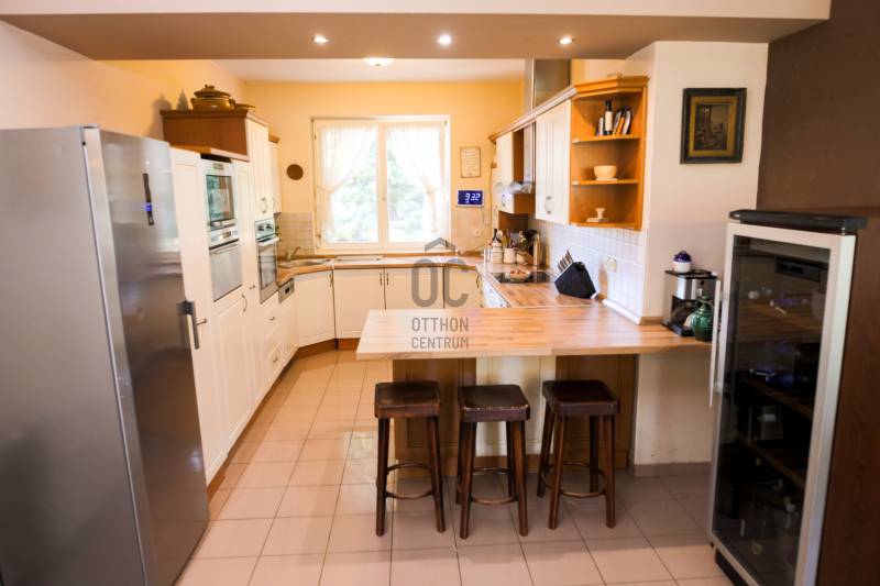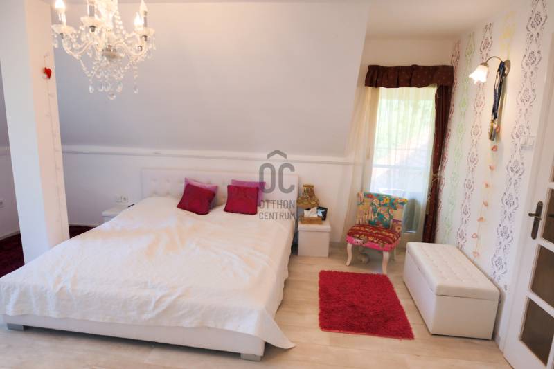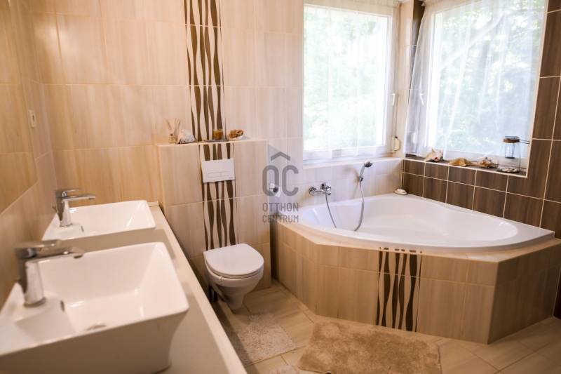Mintha az erdő legmélyén, a természet közepén jártam volna. Ez volt az első benyomásom, amikor megpillantottam ennek a családi háznak a környezetét. Vadászház, panzió a belvárostól mindössze 5 percre? Kérdeztem.Nem, nem. Egy otthonos családi ház, ahol ezek az érzések öntik el a szemlélőt.A telek, ahová a kíváncsi szemek nem láthatnak be, 4819 m2 nagyságú és a Becsali hegyen található. Igény esetén akár meg is osztható.Felső részére épült a három szintes ház, a középső részen gondozott, hangulatos kert, halastó, az alsó részen pedig saját kis erdő.A Porotherm 38-as falazattal, dupla hőszigetelő vakolattal épült ingatlan 2009-ben lett befejezve, az akkori kornak megfelelő, igényes anyagokkal.2017-ben felújítások történtek (új kazán, festés, új tulajdonos igényeinek megvalósítása).A tető héjazata Bramac hódfarkú cseréppel fedett. Nyílászárói fa szerkezetűek, hőszigetelt üvegezéssel és redőnyökkel felszerelve.Fűtése gázcirkó kazánnal történik radiátoros és padló fűtéses hőleadással, kiegészítésként a nappaliban kandalló és több helyiségben klímaberendezések találhatók.A pinceszint nettó 145,7 m2-es, kert kapcsolatos.Itt található egy biliárd szalon, szauna, bor tároló, kondi terem, vizes blokk, mosókonyha és egyéb tárolók.Ezen helyiségek akár egy kisebb vállalkozásnak is helyet adhatnak.A földszinti élettér nettó 125,1 m2-es, ehhez kapcsolódik egy gyönyörű kilátást nyújtó 40,38 m2-es terasz és egy dupla garázs 33,34 m2-en.Ezen a szinten nappali, konyha, étkező, kettő szoba, fürdő, külön WC és terasz lett megépítve.A tetőtéri szint nettó 92,52 m2-es, bruttó 120,15 m2, ezen kívül egy 6,25 m2-es erkély került kialakításra, 4 négy szobával, kettő fürdővel és kettő gardrób szobával.Így az összes nettó fűtött hasznos alapterület 363,32 m2-es, garázzsal, terasszal, erkéllyel 402,91 m2, bruttó összes pedig 470,92 m2.Közművek közül a csatorna nincs kiépítve az utcában, víz, villany, gáz természetesen bekötve.A telek besorolása zártkerti, művelési ág alól ki van vonva, viszont az épület családi házként van feltüntetve, így bármilyen hiteltermék felvehető rá.Irodánk teljes körű szolgáltatást nyújt kereső ügyfeleinek.Szakszerű tanácsadással, ingyenes CSOK és hitelügyintézéssel, energetikai tanúsítvány elkészítésével és kedvező díjszabású ügyvéddel nyújtunk segítséget!