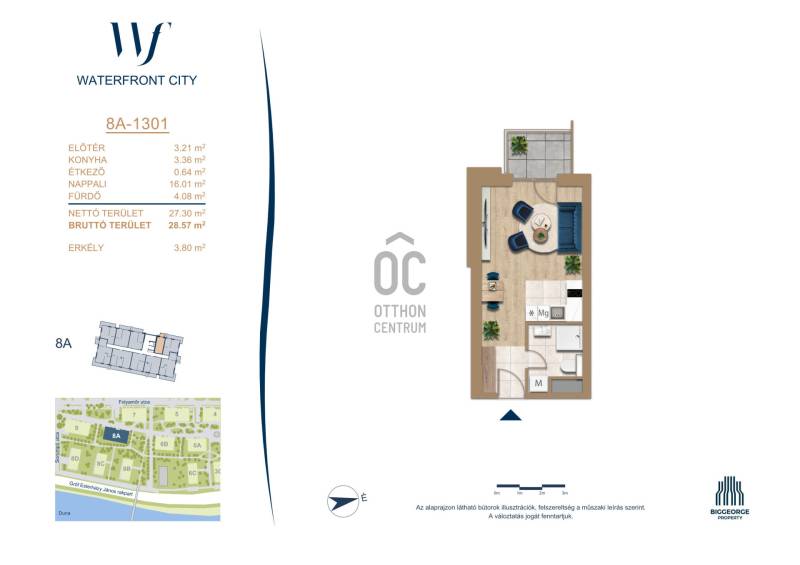 Projekt bemutatásaA projektrőlA Waterfront City egy új, modern városnegyed a 3. kerületben, ahol a természet közelsége és a városi kényelem tökéletes egyensúlyban van. A Duna-part közvetlen szomszédságában elhelyezkedő fejlesztés különleges atmoszférát kínál: a sétányt új épületek határolják, üzletekkel, kávézókkal és szolgáltatásokkal, amelyek élhető közösségi teret teremtenek.A 13 emeletes lakóépületből lenyűgöző örökpanoráma nyílik a budai hegyekre és a folyóra, a tágas teraszok pedig ideálisak a pihenéshez vagy a baráti összejövetelekhez. A zöldtetők, parkosított terek és fenntartható megoldások – mint az energiatakarékos rendszerek és okos otthon funkciók – mind hozzájárulnak a modern, környezettudatos életstílushoz.Látogass el értékesítési irodánkba, és tekintsd meg a városnegyed makettjét személyesen! Ismerd meg, milyen lesz az élet Budapest egyik legizgalmasabb új fejlesztésében!Óbuda szívébenKépzeld el, ahogy egy napsütéses délelőttön Óbuda szívében sétálsz, a Duna közelsége frissítően hat rád, miközben a Folyamőr utca, a Miklós tér és a Bogdáni út által határolt, öt hektáros területre érsz. A levegőben ott van a város történelme, mégis minden részletében a jövő hívogat.A 50 000 négyzetméteres területen egy hangulatos sétány vezet végig, amely egyenesen az óbudai Fő térre visz – mindössze 600 méterre. Ez a sétány nem csupán összeköt, hanem élményt nyújt: a Kolosy térről induló Óbudai Promenád részeként a város egyik legélhetőbb, legpezsgőbb szakaszán haladsz végig. És ha biciklivel érkeznél? A nemzetközi kerékpárút is itt halad el, Szentendre felé vezetve.Az 5. ütemben épülő 149 lakás mindegyike egyedi hangulatot kínál. Ahogy belépsz egy-egy otthonba, a hatalmas üvegfelületeken át beáradó fény és a tágas, szellős terek azonnal magukkal ragadnak. A kilátás? A Kaszap István park zöldje nyújt békét, míg a felsőbb emeletekről a Budai-hegység örökpanorámája tárul eléd – minden nap egy új festmény az ablakodban.A 6. ütemben 316 modern lakás épül, tágas teraszokkal és lenyűgöző kilátással a Dunára és a budai hegyekre. A lakók kényelmét őrszolgálat, kamerarendszer, mélygarázs, vendéglátóhelyek, belső park, játszótér és E-autó töltők szolgálják. Ez a projekt utolsó üteme, amely még közvetlen Duna-parti kapcsolattal rendelkezik.