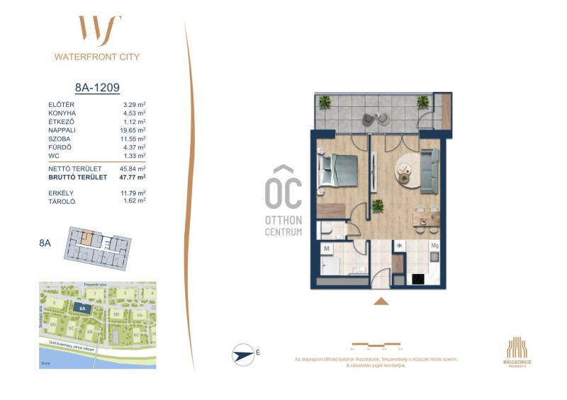 Projekt bemutatásaA projektrőlA Waterfront City egy új, modern városnegyed a 3. kerületben, ahol a természet közelsége és a városi kényelem tökéletes egyensúlyban van. A Duna-part közvetlen szomszédságában elhelyezkedő fejlesztés különleges atmoszférát kínál: a sétányt új épületek határolják, üzletekkel, kávézókkal és szolgáltatásokkal, amelyek élhető közösségi teret teremtenek.A 13 emeletes lakóépületből lenyűgöző örökpanoráma nyílik a budai hegyekre és a folyóra, a tágas teraszok pedig ideálisak a pihenéshez vagy a baráti összejövetelekhez. A zöldtetők, parkosított terek és fenntartható megoldások – mint az energiatakarékos rendszerek és okos otthon funkciók – mind hozzájárulnak a modern, környezettudatos életstílushoz.Látogass el értékesítési irodánkba, és tekintsd meg a városnegyed makettjét személyesen! Ismerd meg, milyen lesz az élet Budapest egyik legizgalmasabb új fejlesztésében!Óbuda szívébenKépzeld el, ahogy egy napsütéses délelőttön Óbuda szívében sétálsz, a Duna közelsége frissítően hat rád, miközben a Folyamőr utca, a Miklós tér és a Bogdáni út által határolt, öt hektáros területre érsz. A levegőben ott van a város történelme, mégis minden részletében a jövő hívogat.A 50 000 négyzetméteres területen egy hangulatos sétány vezet végig, amely egyenesen az óbudai Fő térre visz – mindössze 600 méterre. Ez a sétány nem csupán összeköt, hanem élményt nyújt: a Kolosy térről induló Óbudai Promenád részeként a város egyik legélhetőbb, legpezsgőbb szakaszán haladsz végig. És ha biciklivel érkeznél? A nemzetközi kerékpárút is itt halad el, Szentendre felé vezetve.Az 5. ütemben épülő 149 lakás mindegyike egyedi hangulatot kínál. Ahogy belépsz egy-egy otthonba, a hatalmas üvegfelületeken át beáradó fény és a tágas, szellős terek azonnal magukkal ragadnak. A kilátás? A Kaszap István park zöldje nyújt békét, míg a felsőbb emeletekről a Budai-hegység örökpanorámája tárul eléd – minden nap egy új festmény az ablakodban.A 6. ütemben 316 modern lakás épül, tágas teraszokkal és lenyűgöző kilátással a Dunára és a budai hegyekre. A lakók kényelmét őrszolgálat, kamerarendszer, mélygarázs, vendéglátóhelyek, belső park, játszótér és E-autó töltők szolgálják. Ez a projekt utolsó üteme, amely még közvetlen Duna-parti kapcsolattal rendelkezik.