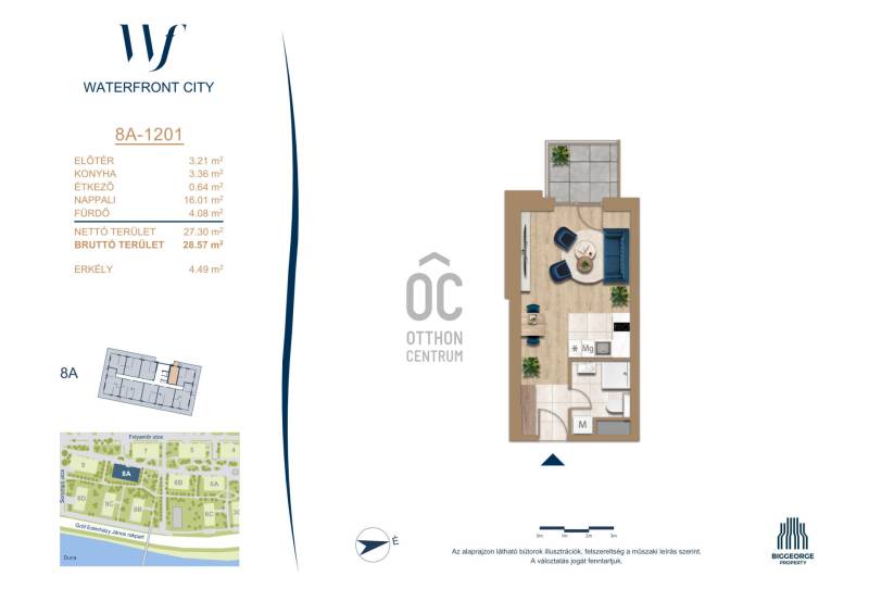 Projekt bemutatásaA projektrőlA Waterfront City egy új, modern városnegyed a 3. kerületben, ahol a természet közelsége és a városi kényelem tökéletes egyensúlyban van. A Duna-part közvetlen szomszédságában elhelyezkedő fejlesztés különleges atmoszférát kínál: a sétányt új épületek határolják, üzletekkel, kávézókkal és szolgáltatásokkal, amelyek élhető közösségi teret teremtenek.A 13 emeletes lakóépületből lenyűgöző örökpanoráma nyílik a budai hegyekre és a folyóra, a tágas teraszok pedig ideálisak a pihenéshez vagy a baráti összejövetelekhez. A zöldtetők, parkosított terek és fenntartható megoldások – mint az energiatakarékos rendszerek és okos otthon funkciók – mind hozzájárulnak a modern, környezettudatos életstílushoz.Látogass el értékesítési irodánkba, és tekintsd meg a városnegyed makettjét személyesen! Ismerd meg, milyen lesz az élet Budapest egyik legizgalmasabb új fejlesztésében!Óbuda szívébenKépzeld el, ahogy egy napsütéses délelőttön Óbuda szívében sétálsz, a Duna közelsége frissítően hat rád, miközben a Folyamőr utca, a Miklós tér és a Bogdáni út által határolt, öt hektáros területre érsz. A levegőben ott van a város történelme, mégis minden részletében a jövő hívogat.A 50 000 négyzetméteres területen egy hangulatos sétány vezet végig, amely egyenesen az óbudai Fő térre visz – mindössze 600 méterre. Ez a sétány nem csupán összeköt, hanem élményt nyújt: a Kolosy térről induló Óbudai Promenád részeként a város egyik legélhetőbb, legpezsgőbb szakaszán haladsz végig. És ha biciklivel érkeznél? A nemzetközi kerékpárút is itt halad el, Szentendre felé vezetve.Az 5. ütemben épülő 149 lakás mindegyike egyedi hangulatot kínál. Ahogy belépsz egy-egy otthonba, a hatalmas üvegfelületeken át beáradó fény és a tágas, szellős terek azonnal magukkal ragadnak. A kilátás? A Kaszap István park zöldje nyújt békét, míg a felsőbb emeletekről a Budai-hegység örökpanorámája tárul eléd – minden nap egy új festmény az ablakodban.A 6. ütemben 316 modern lakás épül, tágas teraszokkal és lenyűgöző kilátással a Dunára és a budai hegyekre. A lakók kényelmét őrszolgálat, kamerarendszer, mélygarázs, vendéglátóhelyek, belső park, játszótér és E-autó töltők szolgálják. Ez a projekt utolsó üteme, amely még közvetlen Duna-parti kapcsolattal rendelkezik.