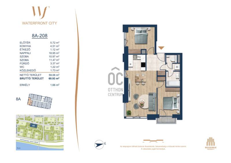 Projekt bemutatásaA projektrőlA Waterfront City egy új, modern városnegyed a 3. kerületben, ahol a természet közelsége és a városi kényelem tökéletes egyensúlyban van. A Duna-part közvetlen szomszédságában elhelyezkedő fejlesztés különleges atmoszférát kínál: a sétányt új épületek határolják, üzletekkel, kávézókkal és szolgáltatásokkal, amelyek élhető közösségi teret teremtenek.A 13 emeletes lakóépületből lenyűgöző örökpanoráma nyílik a budai hegyekre és a folyóra, a tágas teraszok pedig ideálisak a pihenéshez vagy a baráti összejövetelekhez. A zöldtetők, parkosított terek és fenntartható megoldások – mint az energiatakarékos rendszerek és okos otthon funkciók – mind hozzájárulnak a modern, környezettudatos életstílushoz.Látogass el értékesítési irodánkba, és tekintsd meg a városnegyed makettjét személyesen! Ismerd meg, milyen lesz az élet Budapest egyik legizgalmasabb új fejlesztésében!Óbuda szívébenKépzeld el, ahogy egy napsütéses délelőttön Óbuda szívében sétálsz, a Duna közelsége frissítően hat rád, miközben a Folyamőr utca, a Miklós tér és a Bogdáni út által határolt, öt hektáros területre érsz. A levegőben ott van a város történelme, mégis minden részletében a jövő hívogat.A 50 000 négyzetméteres területen egy hangulatos sétány vezet végig, amely egyenesen az óbudai Fő térre visz – mindössze 600 méterre. Ez a sétány nem csupán összeköt, hanem élményt nyújt: a Kolosy térről induló Óbudai Promenád részeként a város egyik legélhetőbb, legpezsgőbb szakaszán haladsz végig. És ha biciklivel érkeznél? A nemzetközi kerékpárút is itt halad el, Szentendre felé vezetve.Az 5. ütemben épülő 149 lakás mindegyike egyedi hangulatot kínál. Ahogy belépsz egy-egy otthonba, a hatalmas üvegfelületeken át beáradó fény és a tágas, szellős terek azonnal magukkal ragadnak. A kilátás? A Kaszap István park zöldje nyújt békét, míg a felsőbb emeletekről a Budai-hegység örökpanorámája tárul eléd – minden nap egy új festmény az ablakodban.A 6. ütemben 316 modern lakás épül, tágas teraszokkal és lenyűgöző kilátással a Dunára és a budai hegyekre. A lakók kényelmét őrszolgálat, kamerarendszer, mélygarázs, vendéglátóhelyek, belső park, játszótér és E-autó töltők szolgálják. Ez a projekt utolsó üteme, amely még közvetlen Duna-parti kapcsolattal rendelkezik.
