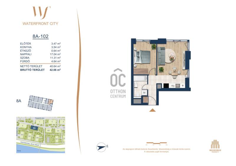 Projekt bemutatásaA projektrőlA Waterfront City egy új, modern városnegyed a 3. kerületben, ahol a természet közelsége és a városi kényelem tökéletes egyensúlyban van. A Duna-part közvetlen szomszédságában elhelyezkedő fejlesztés különleges atmoszférát kínál: a sétányt új épületek határolják, üzletekkel, kávézókkal és szolgáltatásokkal, amelyek élhető közösségi teret teremtenek.A 13 emeletes lakóépületből lenyűgöző örökpanoráma nyílik a budai hegyekre és a folyóra, a tágas teraszok pedig ideálisak a pihenéshez vagy a baráti összejövetelekhez. A zöldtetők, parkosított terek és fenntartható megoldások – mint az energiatakarékos rendszerek és okos otthon funkciók – mind hozzájárulnak a modern, környezettudatos életstílushoz.Látogass el értékesítési irodánkba, és tekintsd meg a városnegyed makettjét személyesen! Ismerd meg, milyen lesz az élet Budapest egyik legizgalmasabb új fejlesztésében!Óbuda szívébenKépzeld el, ahogy egy napsütéses délelőttön Óbuda szívében sétálsz, a Duna közelsége frissítően hat rád, miközben a Folyamőr utca, a Miklós tér és a Bogdáni út által határolt, öt hektáros területre érsz. A levegőben ott van a város történelme, mégis minden részletében a jövő hívogat.A 50 000 négyzetméteres területen egy hangulatos sétány vezet végig, amely egyenesen az óbudai Fő térre visz – mindössze 600 méterre. Ez a sétány nem csupán összeköt, hanem élményt nyújt: a Kolosy térről induló Óbudai Promenád részeként a város egyik legélhetőbb, legpezsgőbb szakaszán haladsz végig. És ha biciklivel érkeznél? A nemzetközi kerékpárút is itt halad el, Szentendre felé vezetve.Az 5. ütemben épülő 149 lakás mindegyike egyedi hangulatot kínál. Ahogy belépsz egy-egy otthonba, a hatalmas üvegfelületeken át beáradó fény és a tágas, szellős terek azonnal magukkal ragadnak. A kilátás? A Kaszap István park zöldje nyújt békét, míg a felsőbb emeletekről a Budai-hegység örökpanorámája tárul eléd – minden nap egy új festmény az ablakodban.A 6. ütemben 316 modern lakás épül, tágas teraszokkal és lenyűgöző kilátással a Dunára és a budai hegyekre. A lakók kényelmét őrszolgálat, kamerarendszer, mélygarázs, vendéglátóhelyek, belső park, játszótér és E-autó töltők szolgálják. Ez a projekt utolsó üteme, amely még közvetlen Duna-parti kapcsolattal rendelkezik.