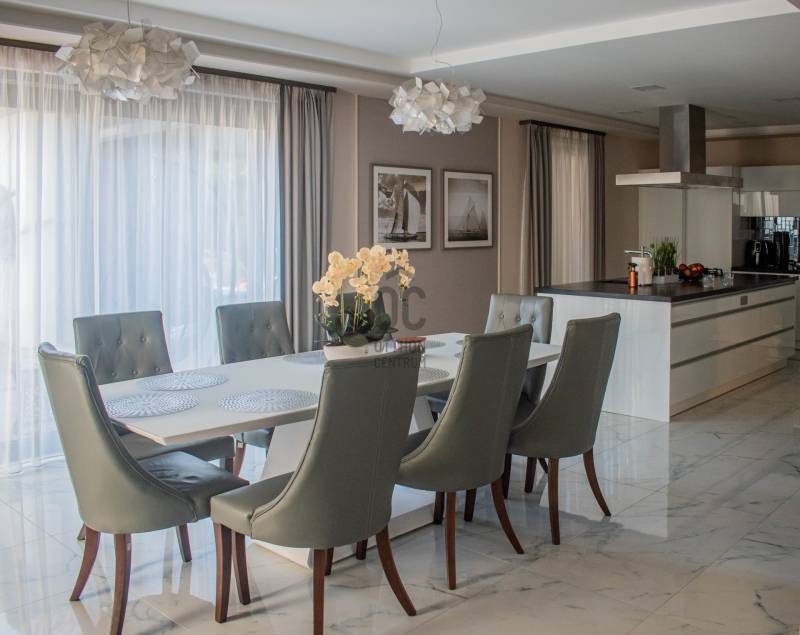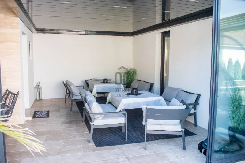 Letisztult formák, természetközeli életérzés, kompromisszumok nélküli OTTHON.Egy hely Szegeden, ahol a város ritmusa lelassul és a víz közelsége az egész napnak új jelentést ad.A Holt-Tisza partján található ez a 2020-ban teljesen újjáépített, prémium minőségű, összesen 361 m²-es modern ingatlan, amely a mai luxusotthonok minden ismérvével rendelkezik:tágas terek, természetes fény, időtálló anyagok, intelligens technológia, gondosan megkomponált részletek.RÖVID ÖSSZEFOGLALÓ:• 361 m² összterület • 1071 m² vízparti telek• 3 állásos garázs + SAJÁT MÓLÓ• Fűthető, fedett medence ellenáramoltatóval• 26 m² bioklimatikus pergolával fedett terasz• Loxone okosotthon rendszer, talajszondás hőszivattyú, mennyezethűtés• Teljes bútorzat és berendezés az árban• Rövid időn belül költözhető, magas minőségű családi házA LOKÁCIÓ – vízparti nyugalom, városi kényelemA saját móló és a víz közelsége olyan életmódot tesz lehetővé, amely más ingatlanoknál ritka: reggeli kávé a vízpparton, déluáni SUP-túra, esti sütögetés, horgászás vagy csak a természet csendes jelenléte.A FŐÉPÜLET – modern elegancia és időtálló funkcionalitásA 180 m²-es főépület központi tere a 76,8 m²-es amerikai konyhás nappali, amelyet körbeölel a fény és a kert látványa.A hatalmas üvegfelületek és a letisztult belsőépítészeti megoldások olyan egységet alkotnak, ahol a külső és belső tér kapcsolata szinte folyamatos.Tágas előszoba és közlekedő, 2 modern kialakítású fürdőszoba, 4 szoba (24,4 m2, 14 m2, 12,6 m2, 9m2 , melyből egy jelenleg gardróbként funkcionál), háztartási helyiség és gépészeti helyiség biztosítja a mindennapok kényelmét.A nappaliból közvetlen kapcsolat vezet a 26 m²-es, bioklimatikus pergolás teraszra, amely egész évben használható élettér – tökéletes helyszín étkezésekhez, pihenéshez vagy vendégfogadáshoz.A gondozott, átgondolt, harmonikus KERT és a fűthető, fedett, ellenáramoltatóval felszerelt MEDENCE garantálja a teljes kikapcsolódást a fárasztó hétköznapokat követően.A VENDÉGHÁZ – önálló lakótér, maximális kényelemmelAz 50 m²-es vendégház teljes értékű lakóegység amerikai konyhás nappalival,hálószobával, modern fürdőszobával, gardróbbal.Ideális többgenerációs használatra, felnőtt gyermek számára, nagyszülőknek vagy vendégeknek – külön, mégis kényelmesen közel a családhoz.MŰSZAKI FELSZERELTSÉG – a modern otthon láthatatlan kényelmeAz ingalan korszerű, energiahatékony és intelligens rendszerekkel működik:• Loxone Smart Home rendszer• talajszondás hőszivattyú• padlófűtés és mennyezethűtés• szellőztető rendszer• 3 rétegű üvegfelületek• elektromos redőnyök• központi porszívó• kamera rendszer + riasztó• automata öntözőrendszer + fúrt kút• vendégház: elektromos kazán + radiátoros fűtés• 3 állásos garázs (105 m²)• pince (25 m²) + tároló (15 m²)Ez a Holt-Tisza-parti családi ház egy olyan otthon, ahol minden tér a fényre, a nyugalomra és a kényelmes, modern életre van hangolva.A természet közelsége és a technológiai felszereltség együtt adja a prémium életminőség élményét.**Tekintse meg személyesen, hívjon bizalommal!
