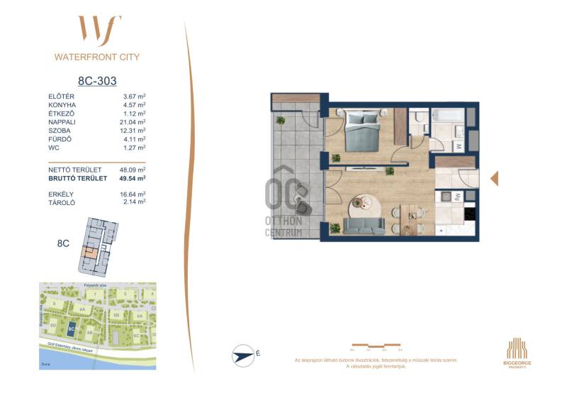 Projekt bemutatásaA projektrőlA Waterfront City egy új, modern városnegyed a 3. kerületben, ahol a természet közelsége és a városi kényelem tökéletes egyensúlyban van. A Duna-part közvetlen szomszédságában elhelyezkedő fejlesztés különleges atmoszférát kínál: a sétányt új épületek határolják, üzletekkel, kávézókkal és szolgáltatásokkal, amelyek élhető közösségi teret teremtenek.A 13 emeletes lakóépületből lenyűgöző örökpanoráma nyílik a budai hegyekre és a folyóra, a tágas teraszok pedig ideálisak a pihenéshez vagy a baráti összejövetelekhez. A zöldtetők, parkosított terek és fenntartható megoldások – mint az energiatakarékos rendszerek és okos otthon funkciók – mind hozzájárulnak a modern, környezettudatos életstílushoz.Látogass el értékesítési irodánkba, és tekintsd meg a városnegyed makettjét személyesen! Ismerd meg, milyen lesz az élet Budapest egyik legizgalmasabb új fejlesztésében!Óbuda szívébenKépzeld el, ahogy egy napsütéses délelőttön Óbuda szívében sétálsz, a Duna közelsége frissítően hat rád, miközben a Folyamőr utca, a Miklós tér és a Bogdáni út által határolt, öt hektáros területre érsz. A levegőben ott van a város történelme, mégis minden részletében a jövő hívogat.A 50 000 négyzetméteres területen egy hangulatos sétány vezet végig, amely egyenesen az óbudai Fő térre visz – mindössze 600 méterre. Ez a sétány nem csupán összeköt, hanem élményt nyújt: a Kolosy térről induló Óbudai Promenád részeként a város egyik legélhetőbb, legpezsgőbb szakaszán haladsz végig. És ha biciklivel érkeznél? A nemzetközi kerékpárút is itt halad el, Szentendre felé vezetve.Az 5. ütemben épülő 149 lakás mindegyike egyedi hangulatot kínál. Ahogy belépsz egy-egy otthonba, a hatalmas üvegfelületeken át beáradó fény és a tágas, szellős terek azonnal magukkal ragadnak. A kilátás? A Kaszap István park zöldje nyújt békét, míg a felsőbb emeletekről a Budai-hegység örökpanorámája tárul eléd – minden nap egy új festmény az ablakodban.A 6. ütemben 316 modern lakás épül, tágas teraszokkal és lenyűgöző kilátással a Dunára és a budai hegyekre. A lakók kényelmét őrszolgálat, kamerarendszer, mélygarázs, vendéglátóhelyek, belső park, játszótér és E-autó töltők szolgálják. Ez a projekt utolsó üteme, amely még közvetlen Duna-parti kapcsolattal rendelkezik.
