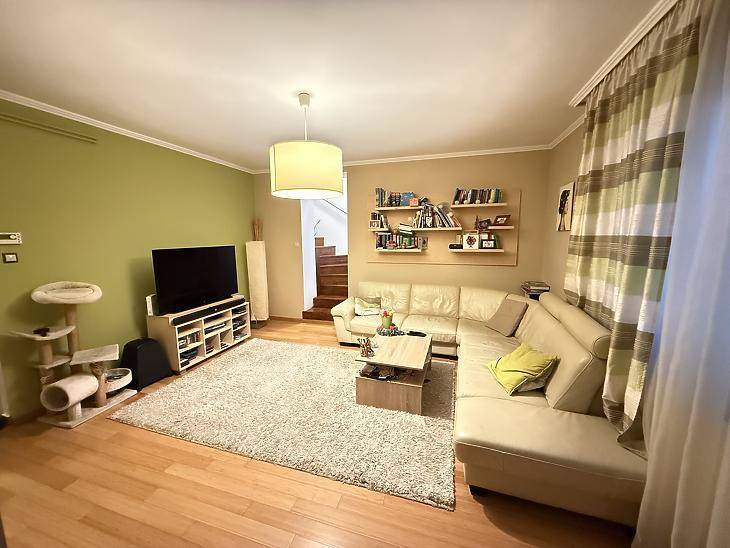 SZENTENDRÉN ELADÓ EGY I. EMELETI TÉGLA LAKÁS!A KÖRNYÉK:A lakás egy nyugodt, csendes környéken helyezkedik el. A buszmegálló csupán 3 perc sétára található, amivel könnyedén megközelíthető a belváros, a H5-ös hév, és még Budapest is. A közelben számos bevásárlási lehetőség, gyógyszertár, iskola, óvoda, dohánybolt megtalálható.A LAKÁS JELLEMZŐI:-Befektetésre is kiváló, a két szint különválasztásával 2 db lakássá is átalakítható!!-Alapterület: 124 nm.-Plusz egy 10 nm-es erkély. Plusz egy gardrób szoba.-Plusz egy 5 nm-es tároló a pincében.-A társasház 1972-ben épült téglából, és 10 cm-es Dryvit szigetelést kapott.-A lakás alsó szintje 2010-ben egy teljeskörű felújításon esett át. 2015-ben lett a 2. szint beépítve. A beépítés engedélyekkel rendelkezik.-A tetőt kerámia cserép fedi, ami 2015-ben került felújításra, a tető alatt 25 cm-es üveggyapot szigetelés és fólia van.-A konyha teljesen gépesítve van. ( szagelszívó, sütő, mosogatógép)-A nyílászárók 3 rétegű műanyagból vannak, és szúnyoghálóval, redőnnyel felszereltek.-A fűtésért egy kondenzációs gázkazán felel, a hőleadók lapradiátorok.-A villanyhálózat vezetékei rézből vannak.-Közös költség: 9.000 Ft.-A rezsi havi 40.000 Ft körül alakul.FINANSZÍROZÁS:Tehermentes, banki finanszírozással is megvásárolható, melyben irodánk ingyenes tanácsadással áll rendelkezésükre!VEVŐINK RÉSZÉRE A KÖZVETÍTÉS DÍJTALAN!A hirdetésben szereplő adatok tájékoztató jellegűek.