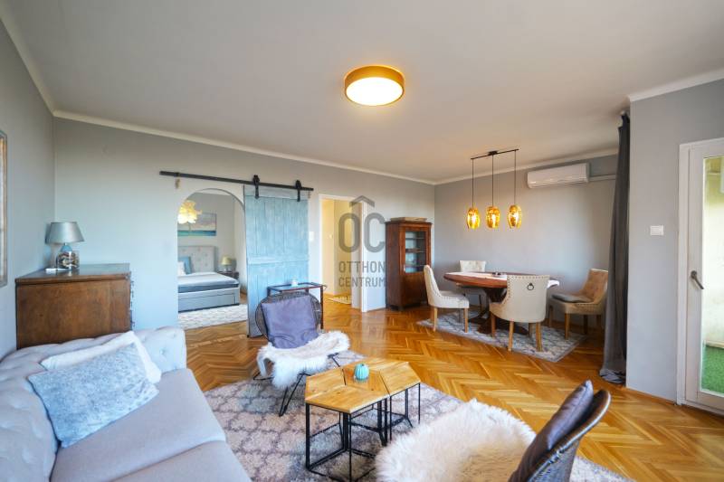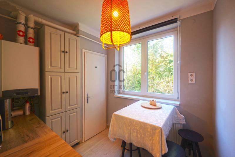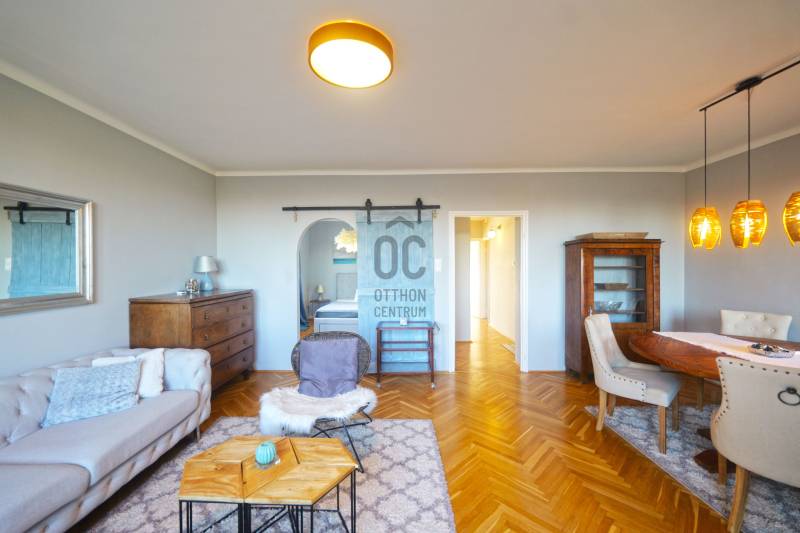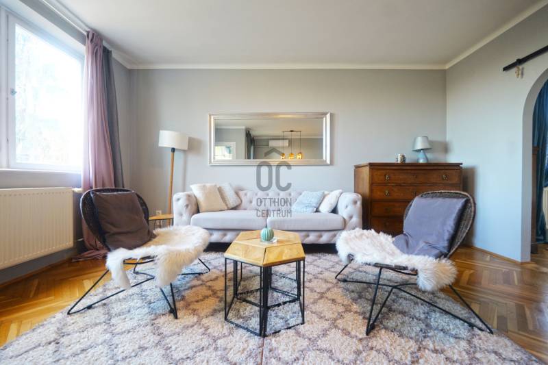 Budapest egyik legelőkelőbb zöldövezeti negyedében, Mártonhegy csendes, ősfás utcájában kínáljuk megvételre ezt a különleges hangulatú, napfényben fürdőző, első emeleti otthont. Az ingatlan egy gondosan karbantartott, elektromos kapuval védett, privát parkban helyezkedik el, ahol három exkluzív, mindössze 9-9 lakásos épület kapott helyet – garázsokkal az épületek aljában és békés, harmonikus lakóközösséggel.A ház műszaki és esztétikai állapotáról a rendezett pénzügyi háttér, a rendszeres karbantartás és a gondos közösség gondoskodik. E környezetben nemcsak egy ingatlant vásárol, hanem egy bensőséges, természetközeli életérzést is, ahol a madárcsicsergés és a zöld lombkorona látványa a mindennapok része, miközben a város zaja ide már nem jut el.A lakás főbb jellemzői:- Tágas, világos terek, minden irányból körbenapozott elhelyezkedéssel- Fűtés: modern gáz kombi cirkó + hűtő-fűtő klíma- Nyílászárók: korszerű, energiatakarékos műanyag ablakok a szobákban, kivéve a nappalit- Szobák: 3 külön bejáratú, jól szeparált helyiség, egyikük hangulatos erkélykapcsolattal (loggia)- Konyha: gépesített, beépített konyhabútorral- Tárolás: PAX IKEA gardrób, külön tárolóhelyiség, praktikus spájz- Parkolás: 16 nm saját, zárható garázs (kötelezően megvásárolandó 19M forintért) + további 1 felszíni beálló ami benne van az árbanA lakás kiváló állapotú, kulturált, azonnal költözhető vagy akár gond nélkül bérbe is adható.Közlekedés és elhelyezkedés:- 102-es, 110-es busz, 59-es villamos- Déli pályaudvar és Széll Kálmán tér: 10–12 perc- Ferenciek tere: kb. 15 perc- M1/M7 autópálya kivezető: kb. 10 percNéhány perces távolságra található:- Hegyvidék Bevásárlóközpont- MOM Park- Tesco, egyéb kényelmi szolgáltatásokEz az ingatlan ideális választás azok számára, akik a város közelségéről nem szeretnének lemondani, mégis a zöldövezet nyugalmát és az exkluzív környezetet részesítik előnyben. Egy igazi ritkaság, ahol a minőség, a harmónia és a kivételes elhelyezkedés találkozik.Hívjon és nézzük meg együtt!